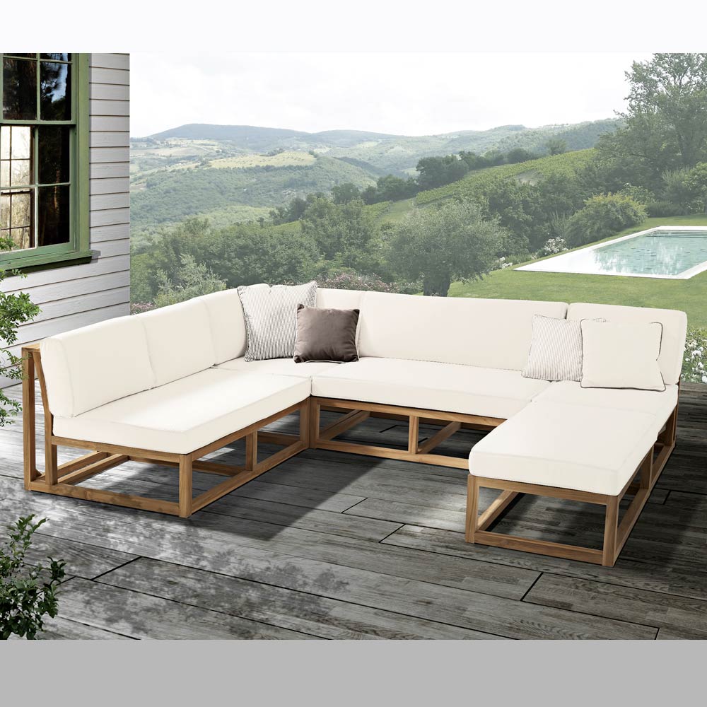 Modulare Gartenlounge aus natürlichem Teakholz und Kissen