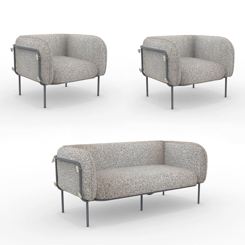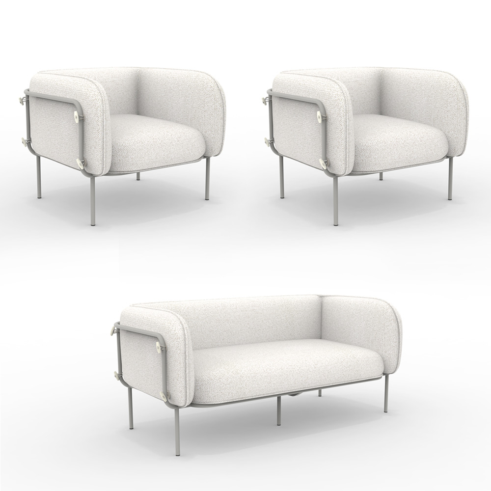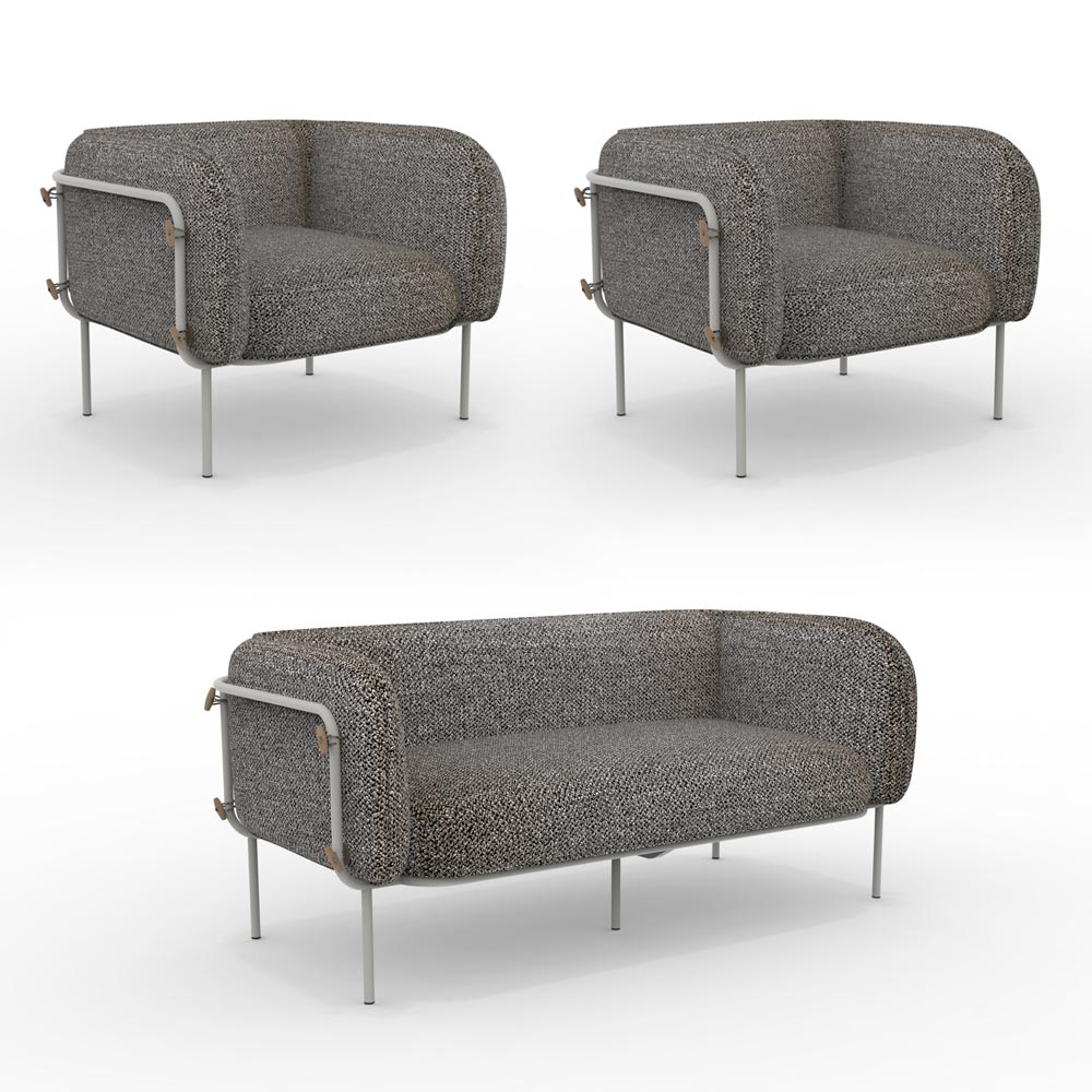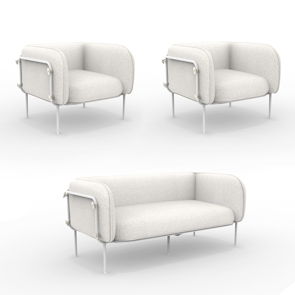 wasserdichte und UV-beständige Stoff umhüllt die weiche Polsterung und lädt zu Momenten wahrer Entspannung ein. Die verfügbaren Stoffausführungen fügen sich harmonisch in ihre Umgebung ein, reflektieren das Sonnenlicht und schaffen eine Atmosphäre der Ruhe und des Stils. Ob neben einem glitzernden Pool oder in einer grünen Ecke des Gartens – dieses Lounge-Set verspricht dauerhaften Komfort und zeitlose Schönheit.