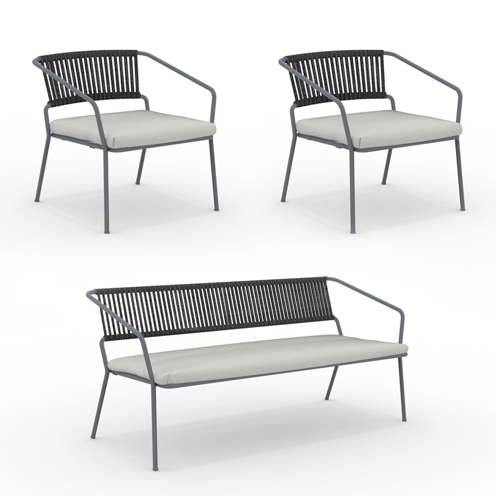 Garten-Lounge-Set bestehend aus 2 Sesseln und 1 2-Sitzer-Sofa Made in Italy