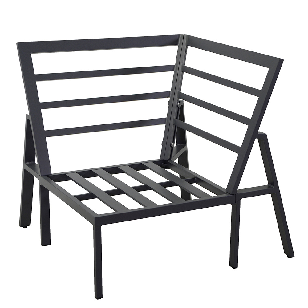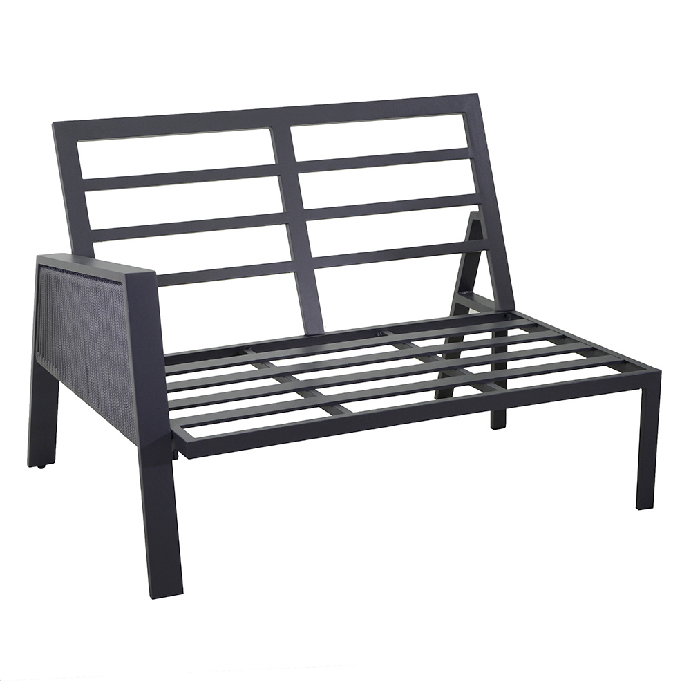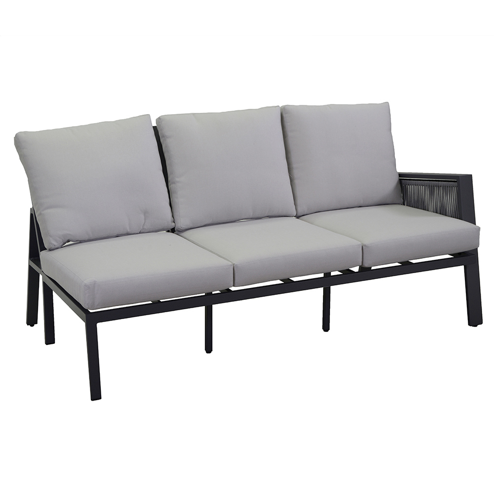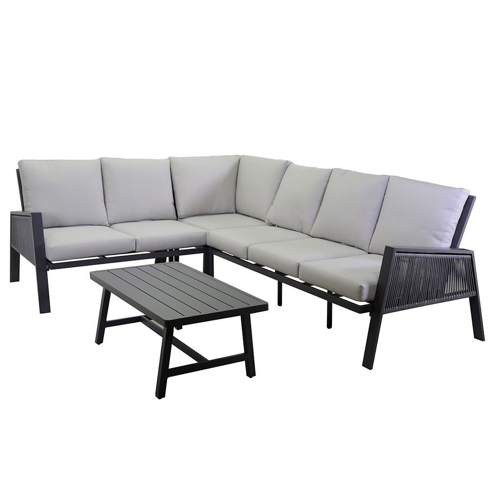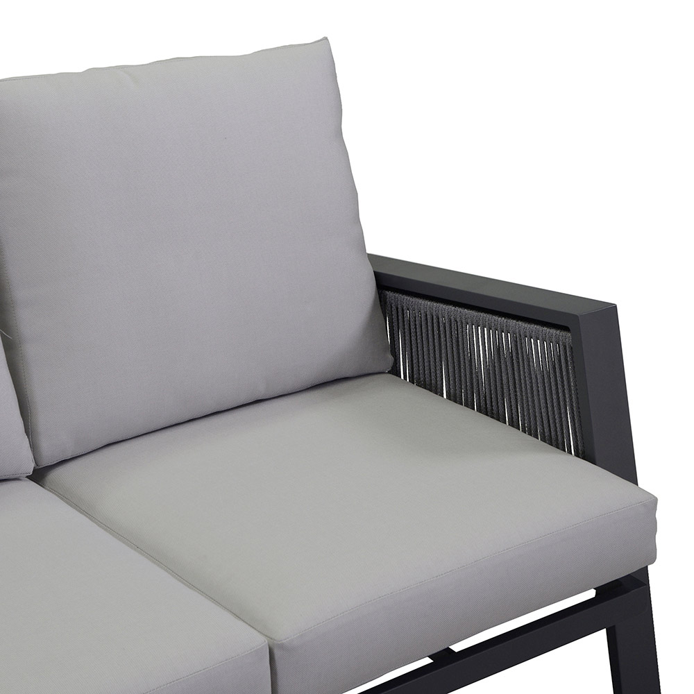 1 Sofa (ein 2-Sitzer, ein Ecksitz, ein 3-Sitzer): anthrazitfarbener rostfreier Aluminiumrahmen, hellgraue Textilene-Schnüre und hellgraue wasserabweisende 100% Olefin-Kissen, abnehmbare Bezüge.