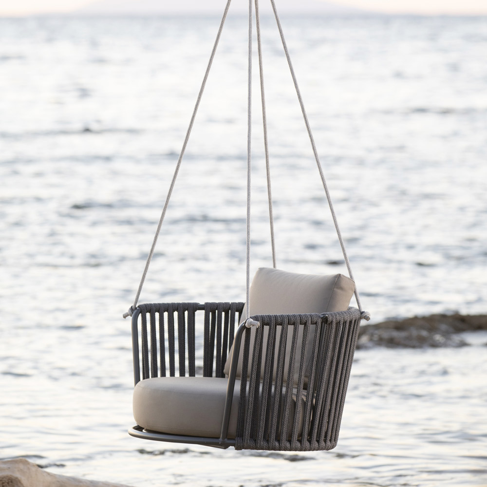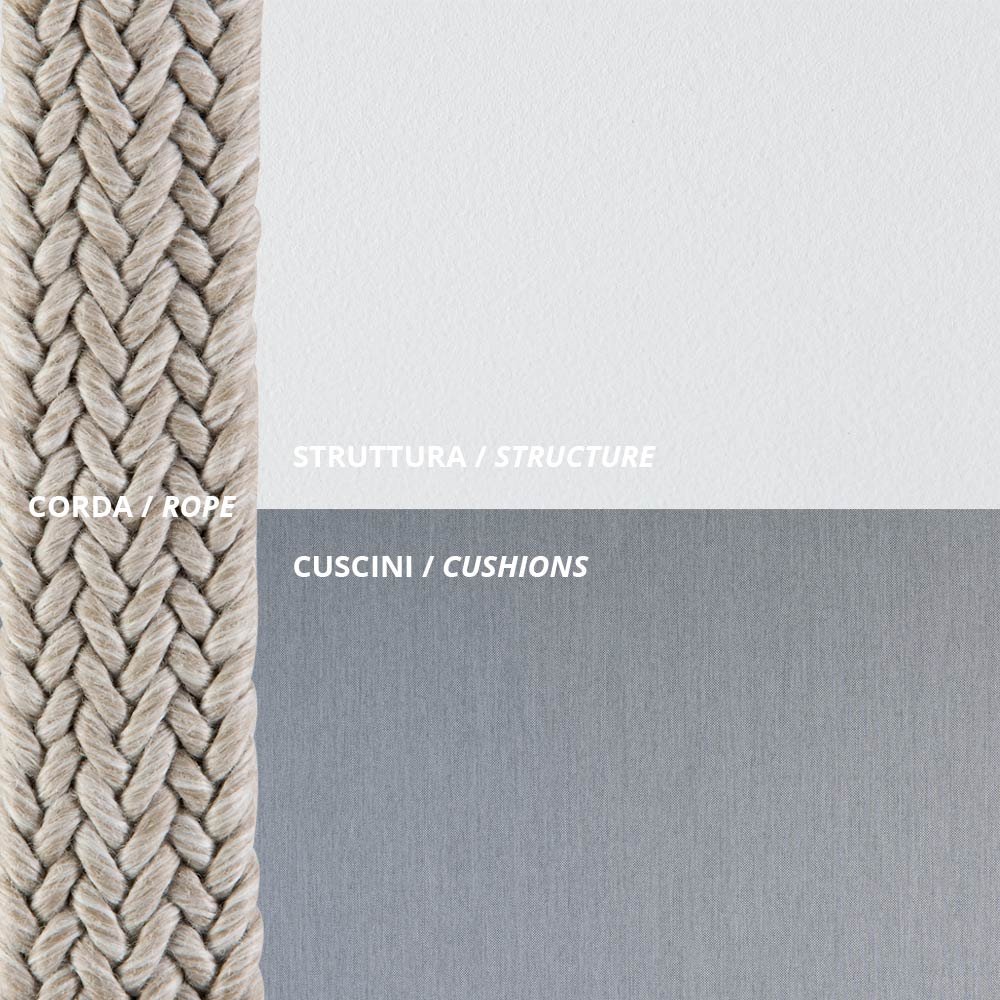 Schaukel für Gartenmöbel aus verzinktem Stahl und Seil, komplett in Italien hergestellt , inklusive Sitz- und Rückenkissen sowie Seilen . Die Verzinkung erhöht die Widerstandsfähigkeit der Materialoberfläche gegen korrosive Witterungseinflüsse, während die Seile chlor- und sonnenbeständig sowie schimmelresistent sind. Die Kissen bestehen aus UV- und wasserbeständigem Material, das die Farbe lange behält und die Schaukel zu einem idealen Einrichtungselement für jeden Außenbereich macht.