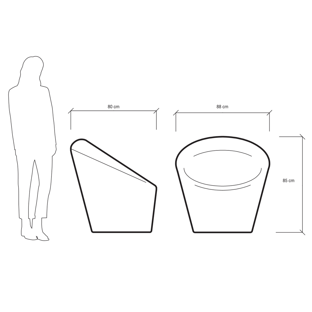 Dieser Gartensessel ist gemacht aus farbigem Polyethylen hergestellt in Italien und ist sowohl für den Innen- als auch für den Außenbereich geeignet. Die schlichte Geometrie der Formen bewahrt dennoch ihren avantgardistischen Stil und ermöglicht es denjenigen, die einen Hauch von neuem Stil suchen, Wohnräume umzugestalten. Dieser Sessel ist ideal für tausend Atmosphären und für tausend Umgebungen: zu Hause, im Wartezimmer, im Garten, am Pool und in vielen anderen Situationen. Es hat keine Angst vor der Natur: UV-Strahlen , hohe und niedrige Temperaturen, Regen und jede Art von Witterungseinflüssen ändern nichts an seinem Charme, seiner Farbe und seiner Form. Auch in der fluoreszierenden Version erhältlich: Die spezielle fluoreszierende Pigmentierung bewirkt, dass die Fliese tagsüber sowohl natürliches als auch künstliches Licht ansammelt und es nachts allmählich abgibt, wodurch ein magisches Leuchten bis zum Morgen entsteht. Das fluoreszierende Pigment ist ungiftig und gesundheitlich völlig unbedenklich.