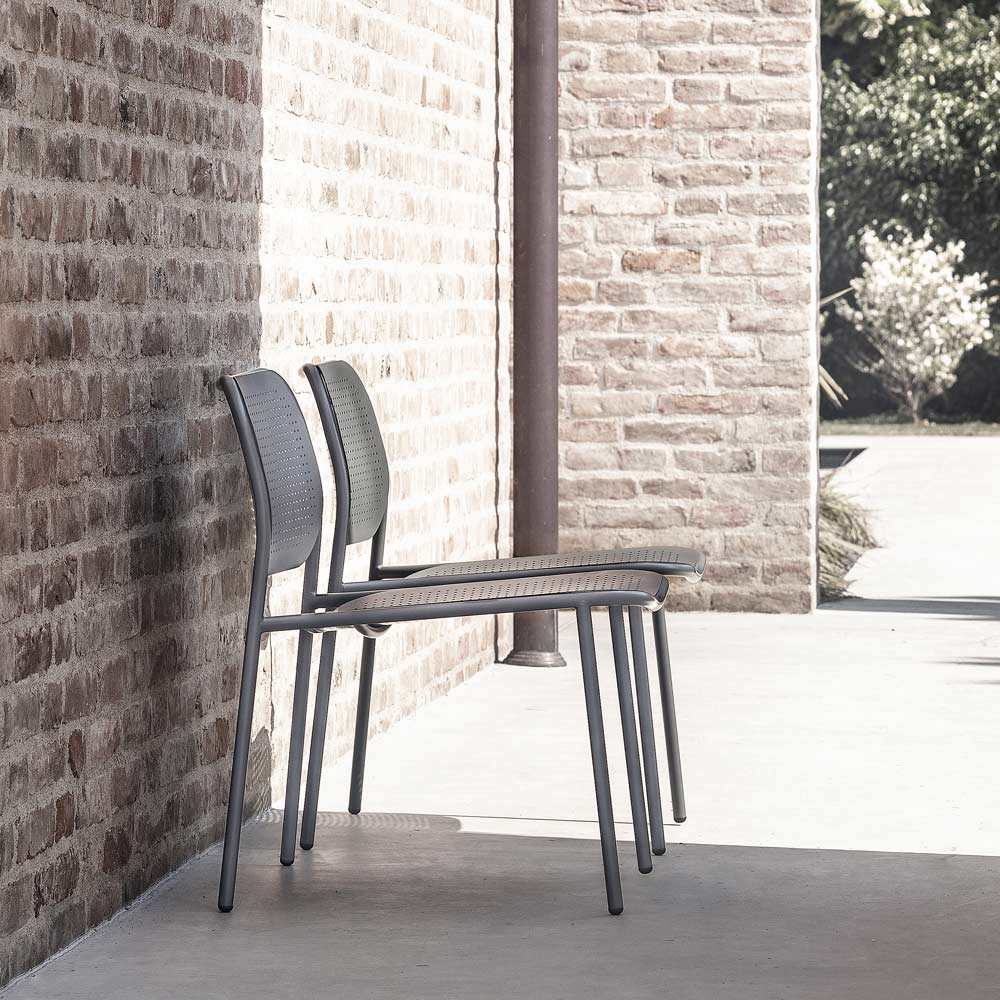 Stapelbarer Gartensessel aus Metall Made in Italy, 2 Stück.