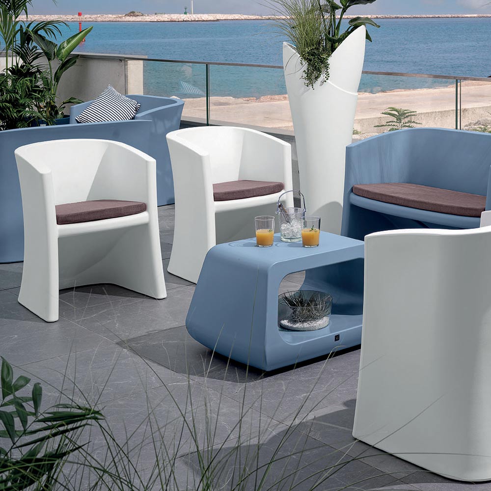 Dieser vollständig in Italien hergestellte Outdoor -Sessel mit einer Struktur aus farbigem Polyethylen ist für diejenigen gedacht, die gleichzeitig Funktionalität und Design für einen fast einhüllenden Komfort suchen.