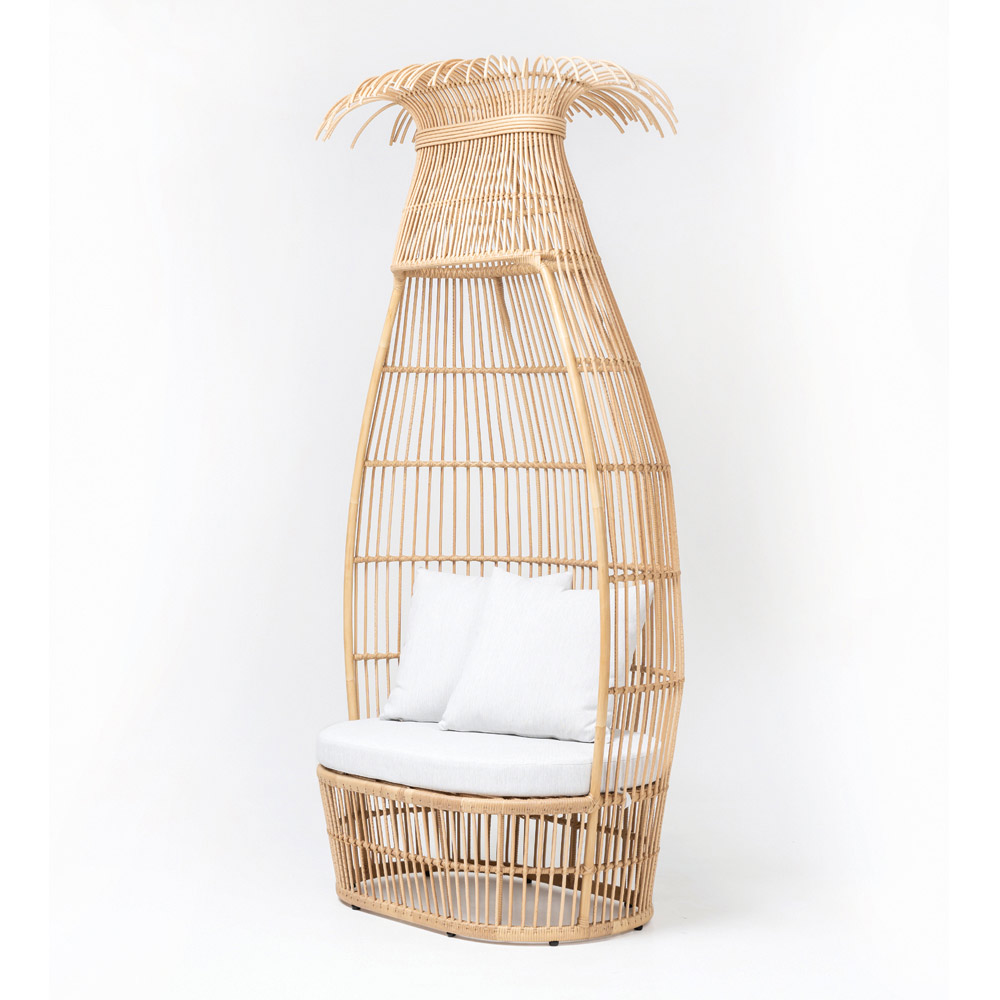 Dieser Gartensessel ist ein wahres Nest aus Eleganz und Komfort. Sein hoher, ovaler Rahmen, der fachmännisch aus Poly-Rattan gefertigt wurde, erinnert an exotische Strandorte und fügt sich harmonisch in die Außenumgebung ein. Das offene, luftige Design sorgt für Luftzirkulation und Licht, während die geschwungene Form ein Gefühl von Schutz und Privatheit vermittelt.