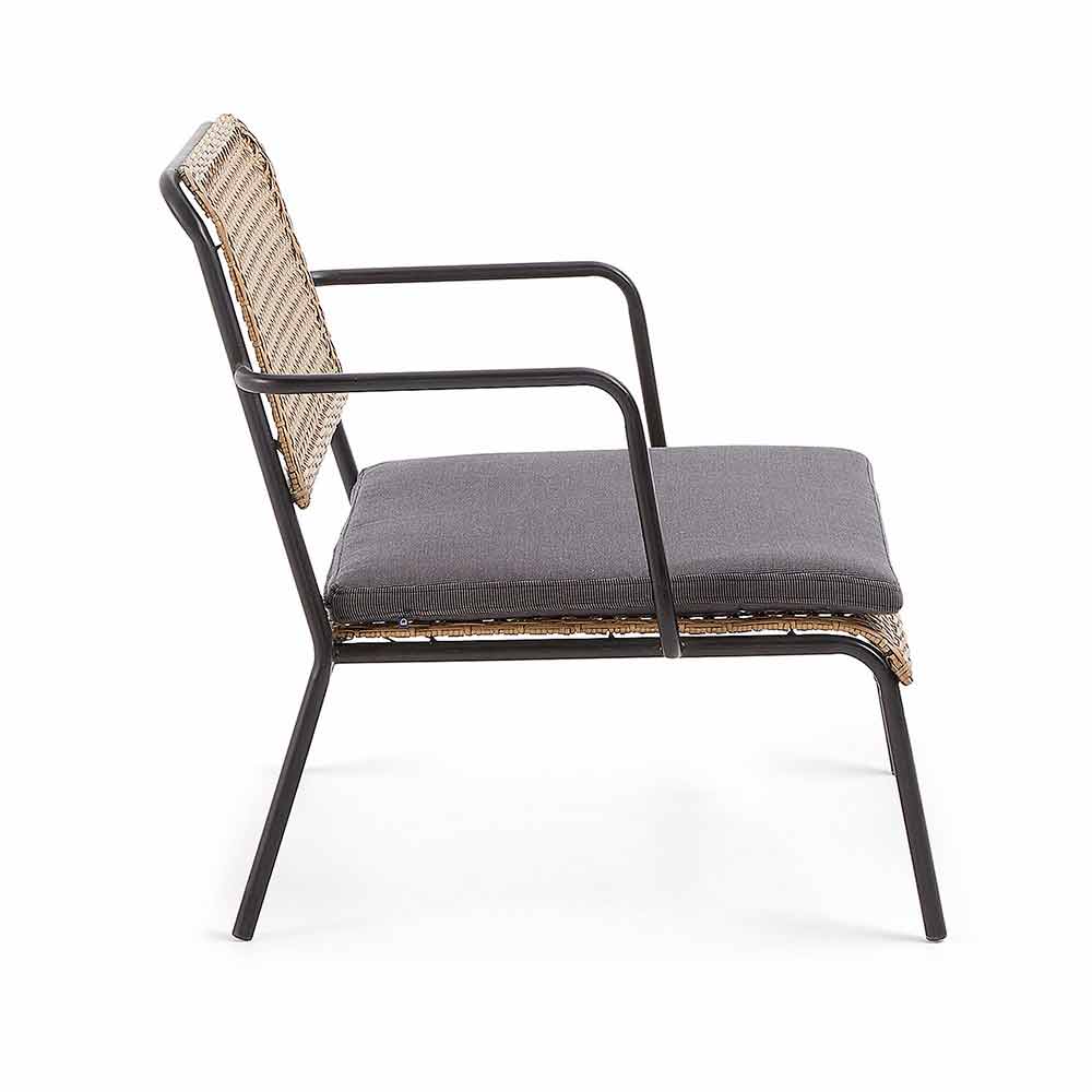 Milva-Gartensessel aus schwarzem Stahl und gewebtem Polypropylen