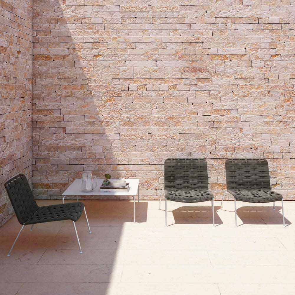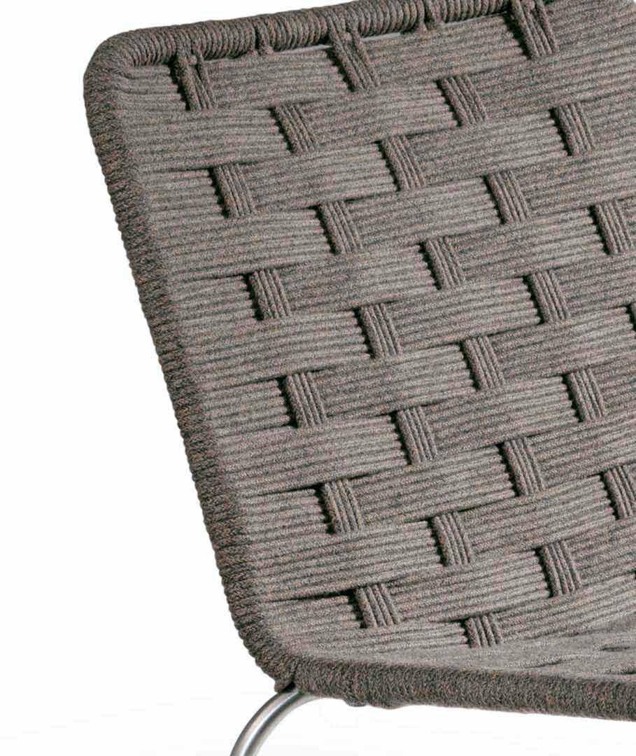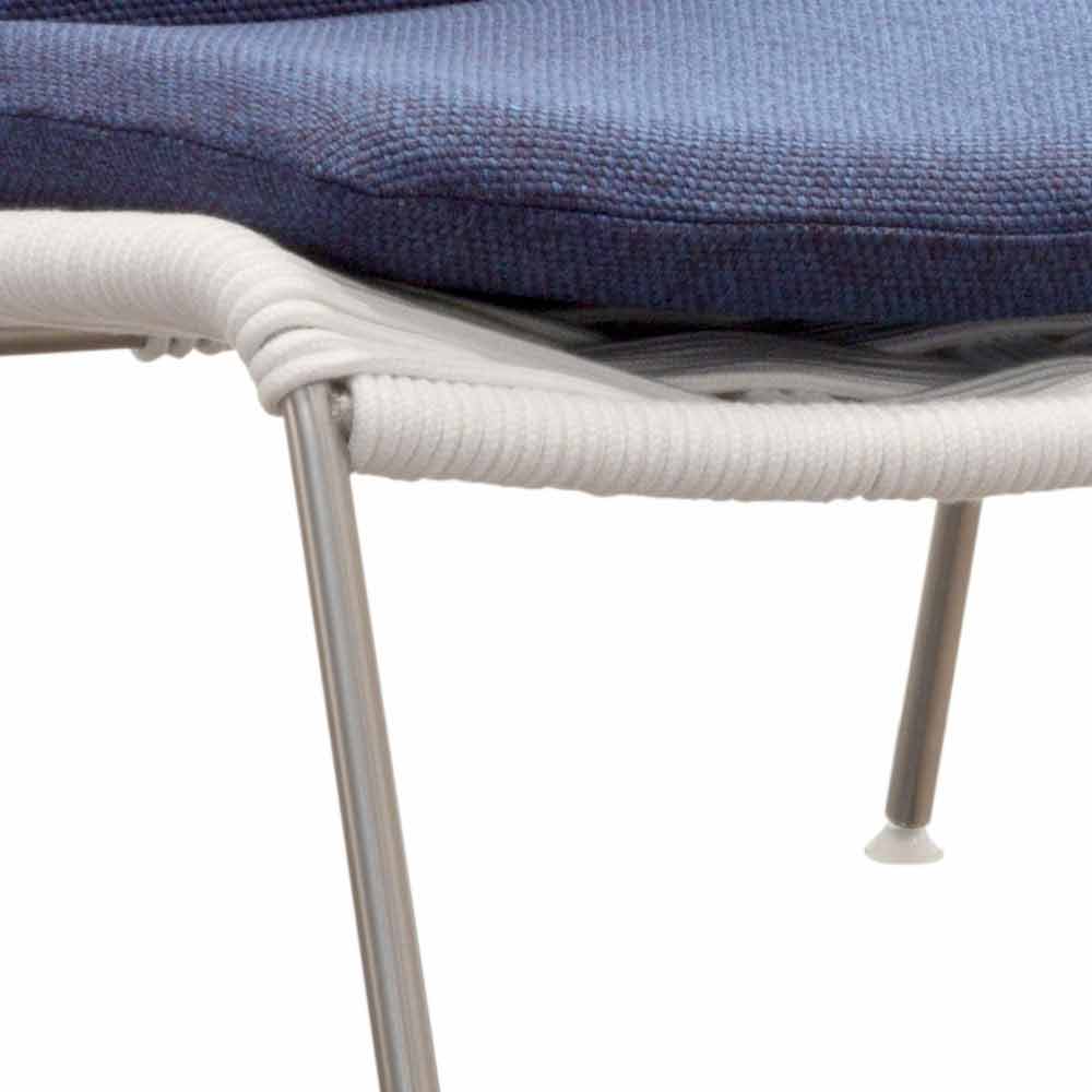 Moderner Outdoor-Sessel aus Stahl und weißer oder taubengrauer Kordel, hergestellt in Italien.