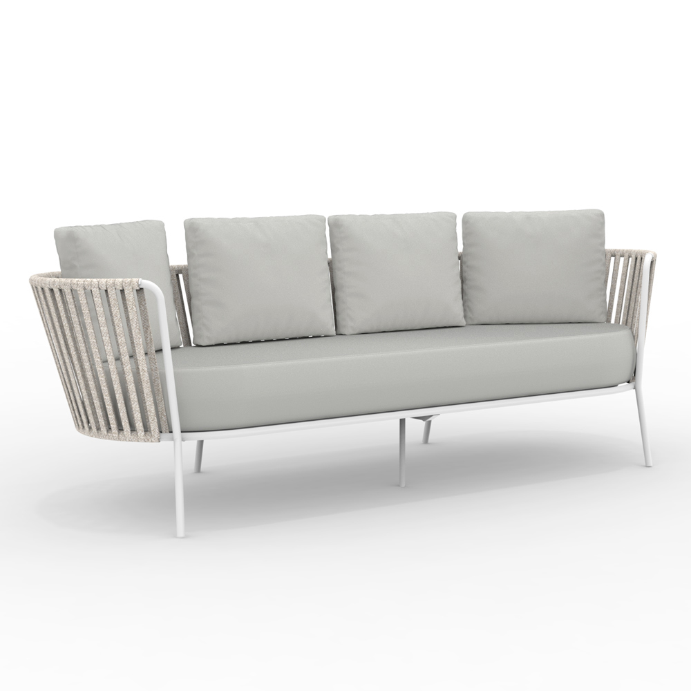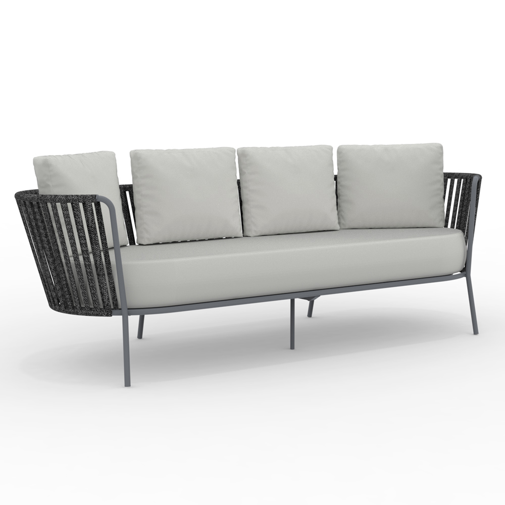 Dieses wunderschöne Outdoor-Sofa kombiniert ein modernes und raffiniertes Design mit hochwertigen Materialien und ist ideal, um in Ihrem Garten, auf Ihrer Terrasse oder Veranda eine einladende und anspruchsvolle Umgebung zu schaffen.
