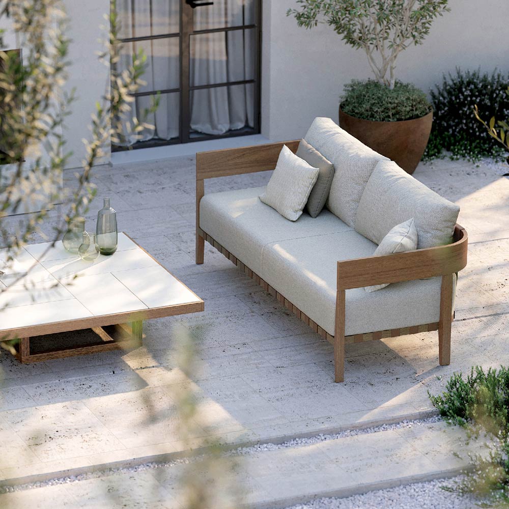 Gartensofa aus Teakholz und Stoff Made in Italy - Briga
