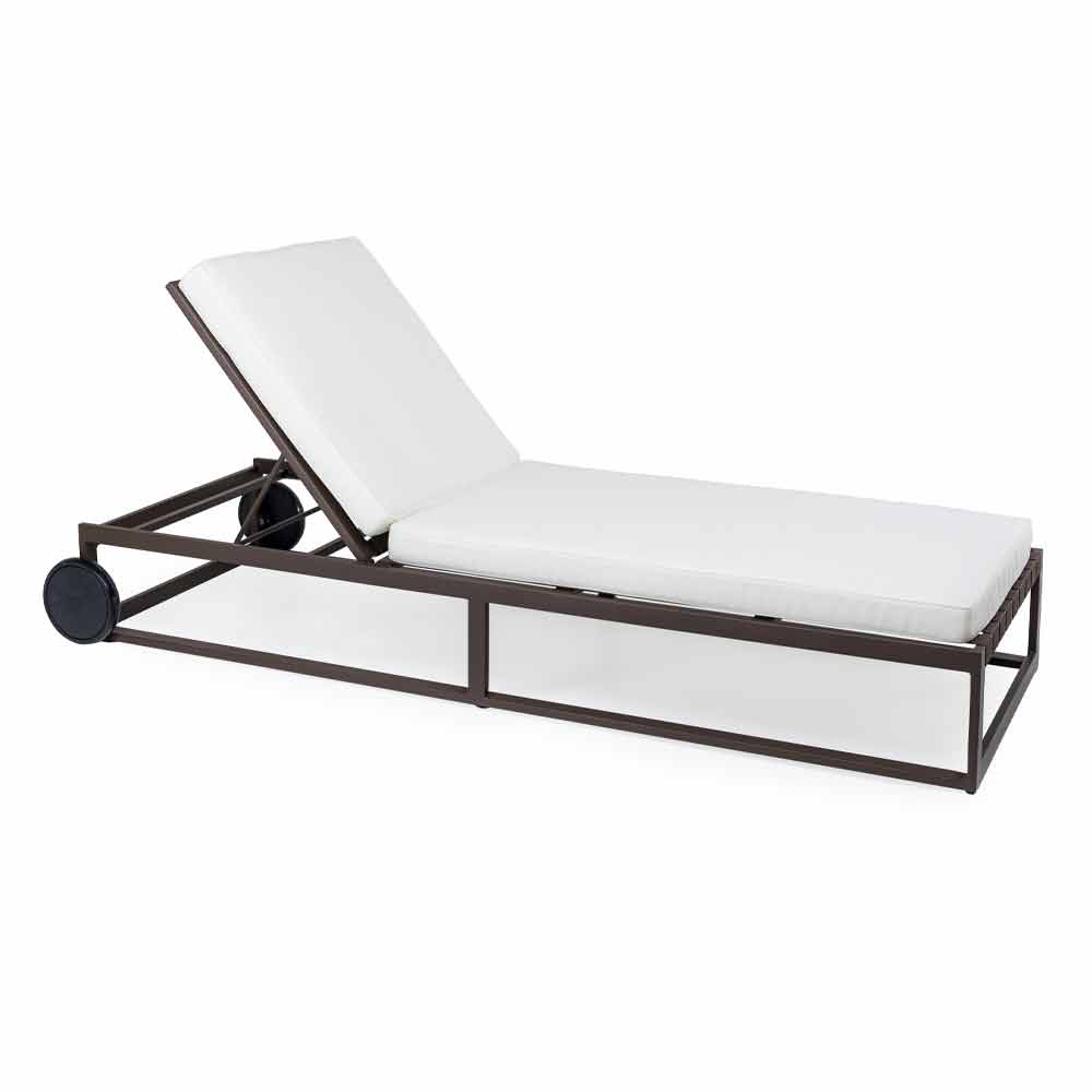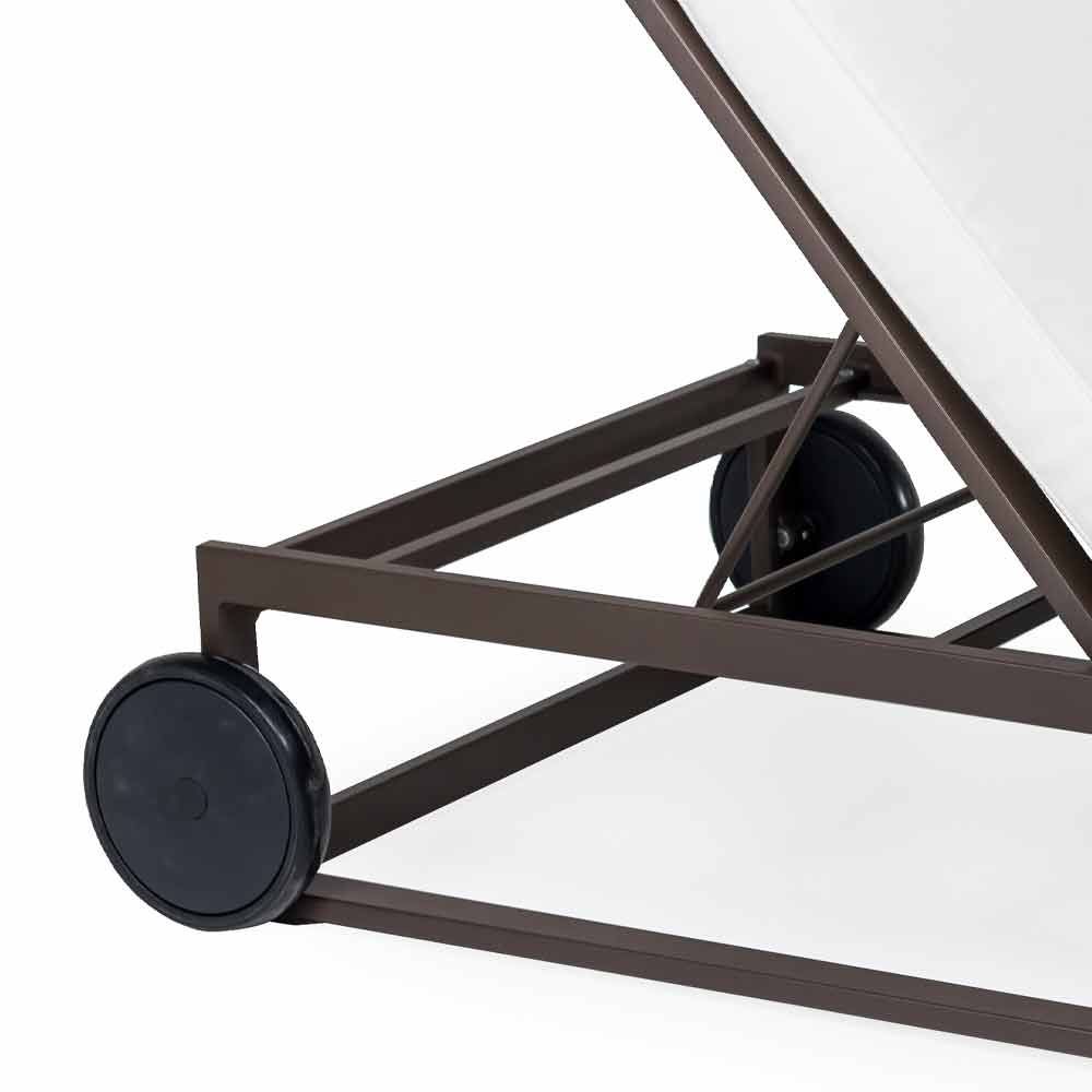 Sonnenliege mit Aluminiumrädern in 3 Ausführungen und Kissen, luxuriöses Design.