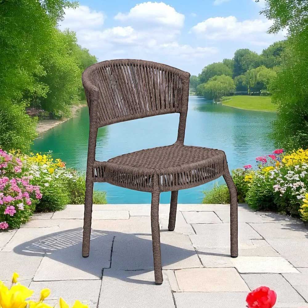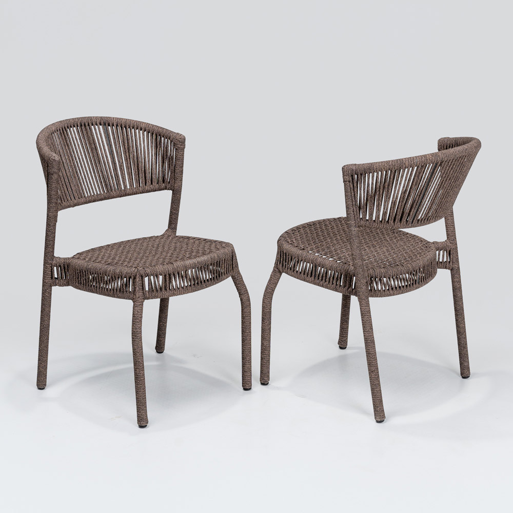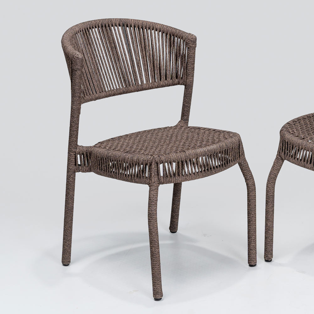 Outdoor-Stuhl mit Aluminium-Gestell und Olefin/PP ROPE-Geflecht.