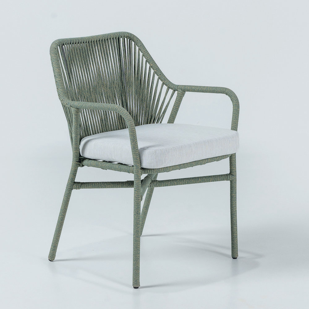 Gartensessel aus Aluminium, Seilgeflecht und Sitzkissen
