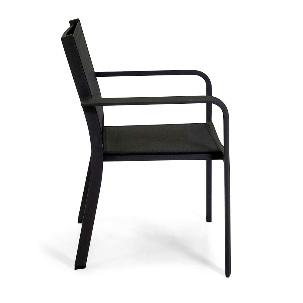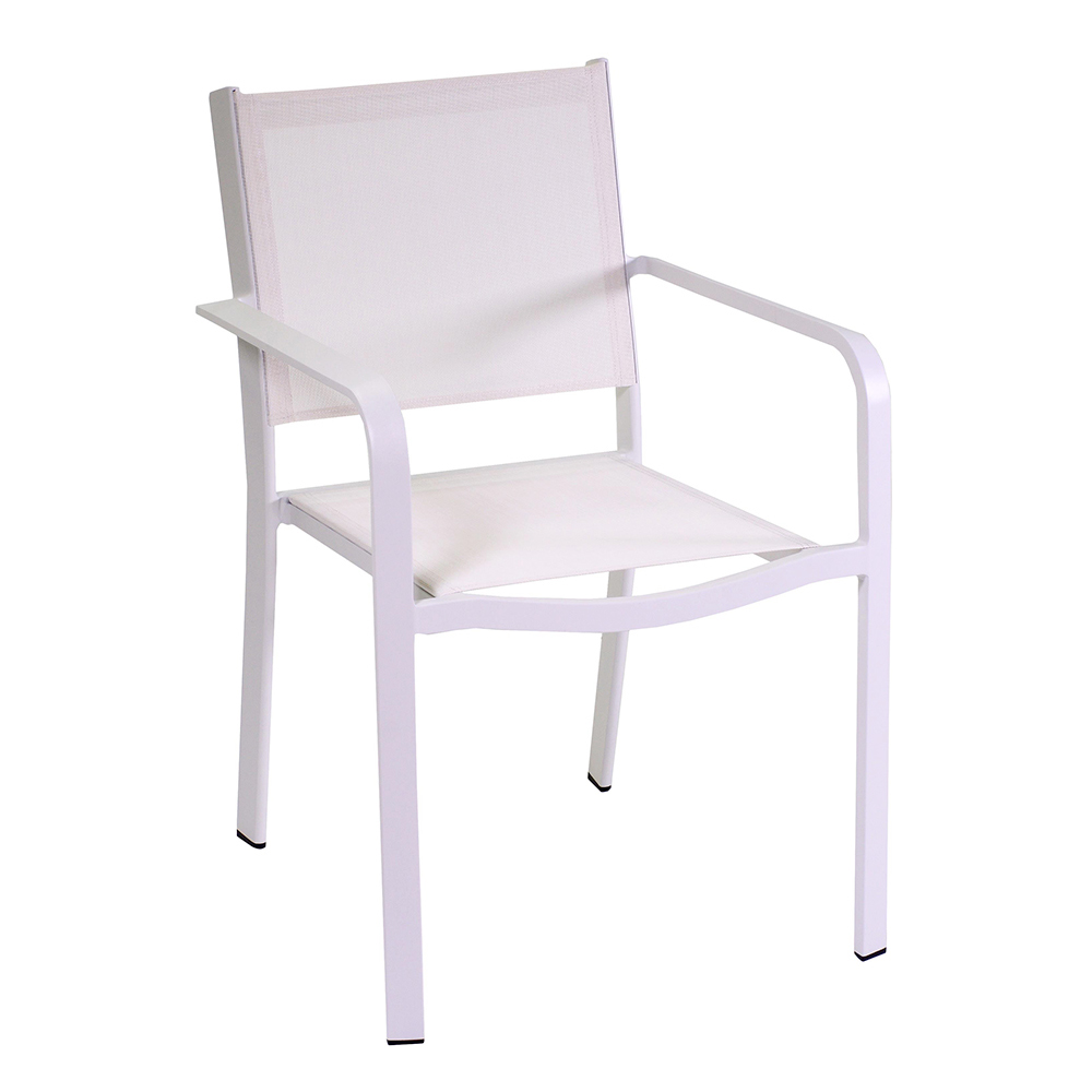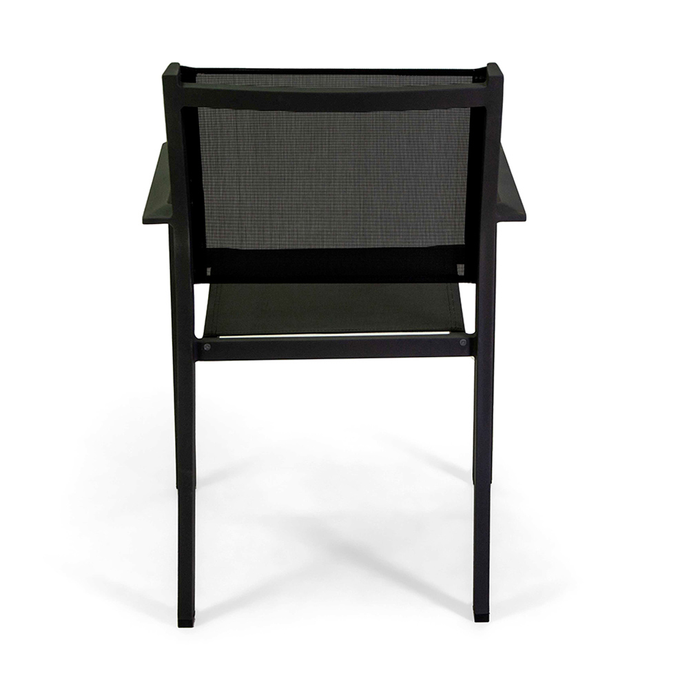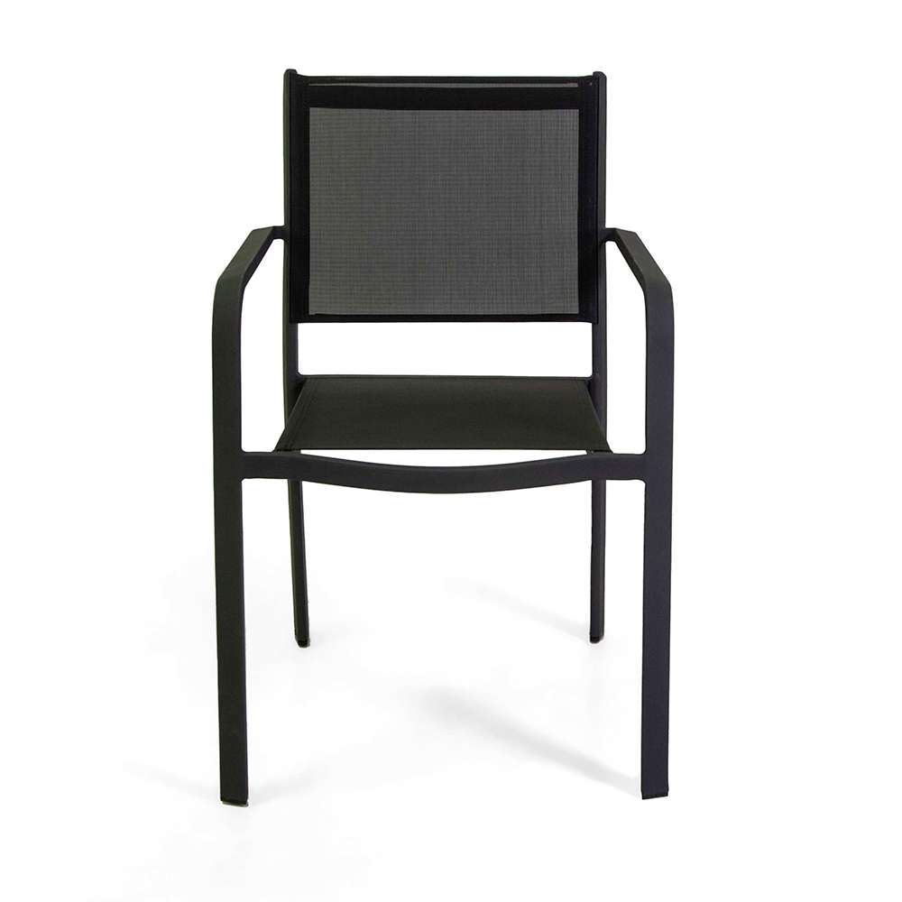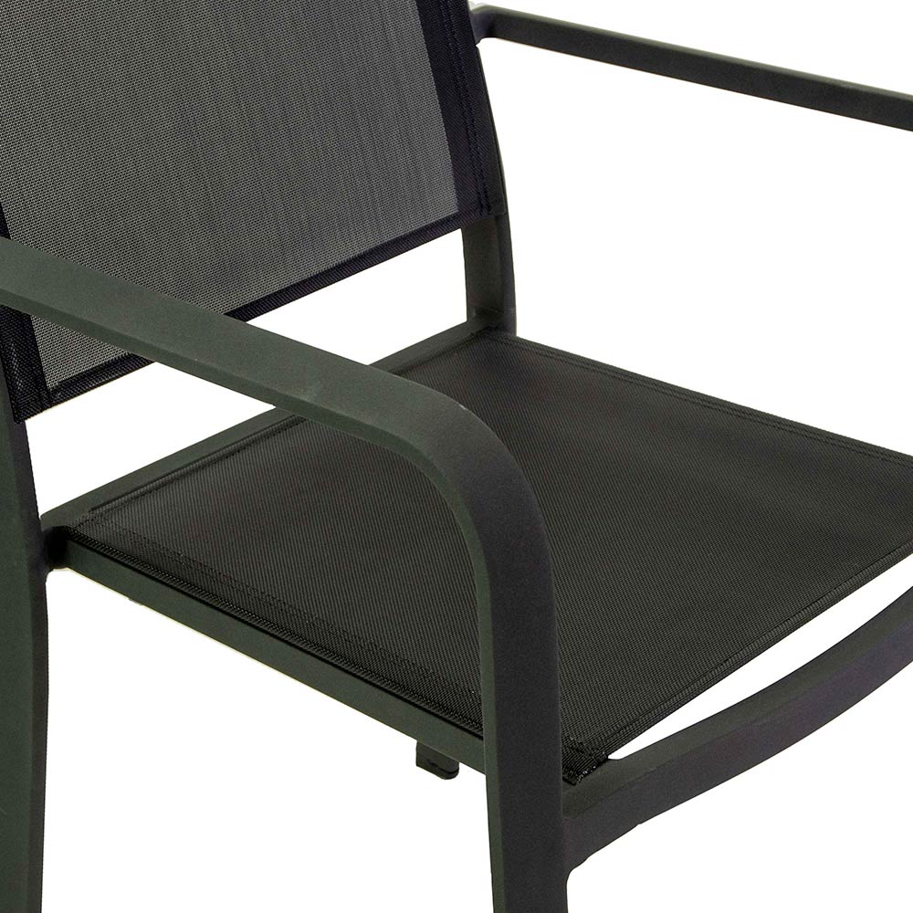 Sessel mit Sitz und Rückenlehne aus Textilene und Aluminiumstruktur.
