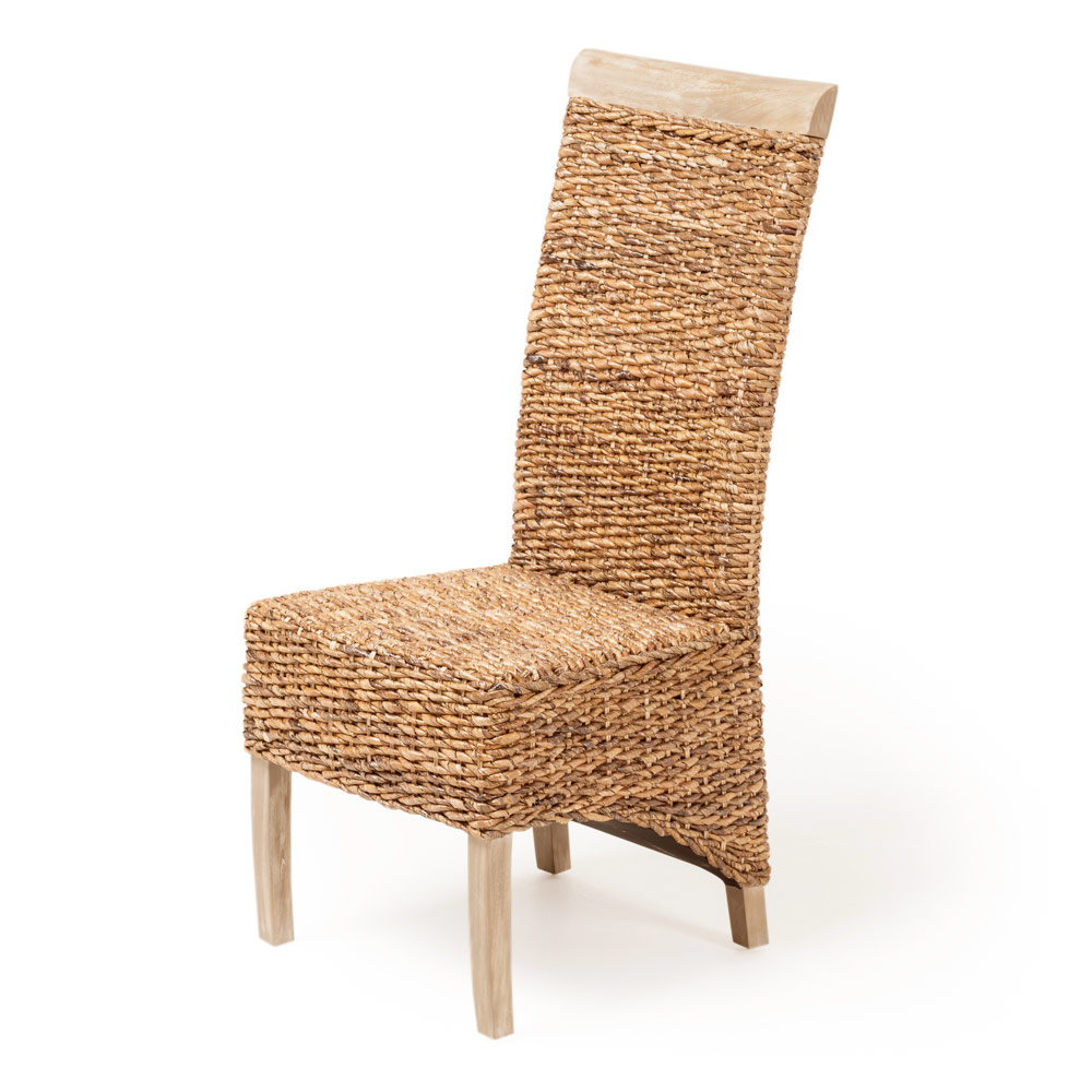 Stuhl für den Außenbereich aus handgeflochtenem Bananenholz. Die Stuhlbeine sind aus Holz.