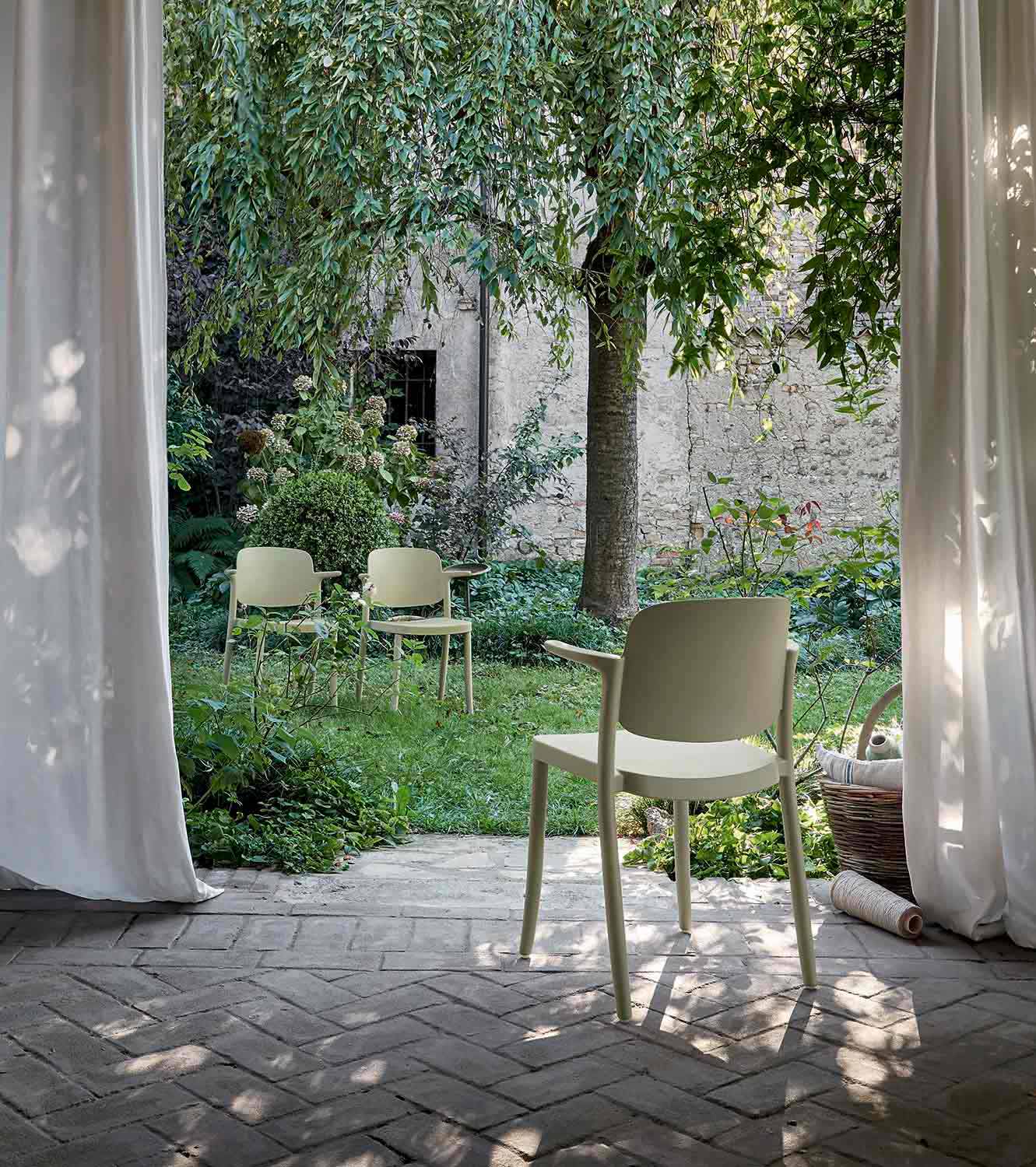 Der Bertina Outdoor-Stuhl zeichnet sich durch ein Design aus, das es schafft, die Tradition , die wir in der Form finden, perfekt mit der Modernität von Polypropylen zu verbinden , die ihn gegen alle Wetterbedingungen beständig macht.