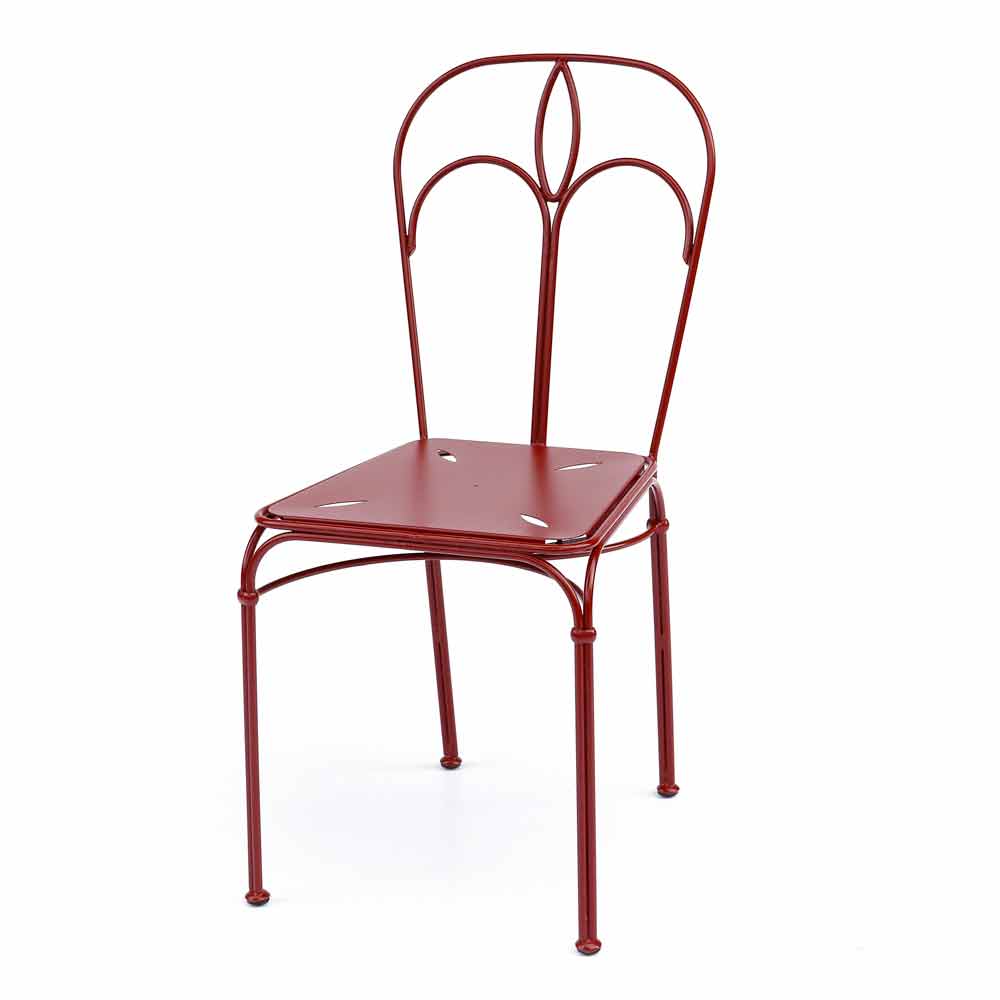 Gartenstuhl aus rot lackiertem Eisen mit Kissen Made in Italy, 2 Stück.