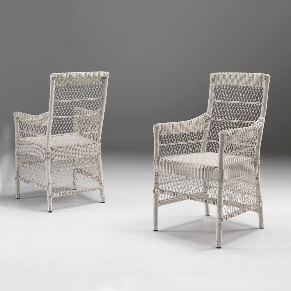 Außenstuhl mit Armlehnen aus handgeflochtener Polyrattanfaser