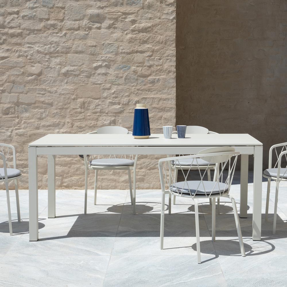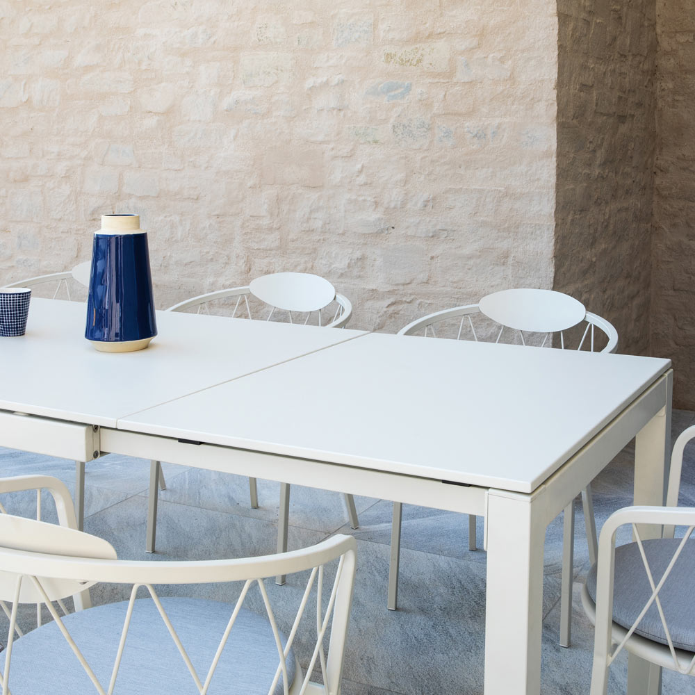 Ausziehbarer Esstisch für den Außenbereich aus pulverbeschichtetem verzinktem Eisen. Hergestellt in Italien.