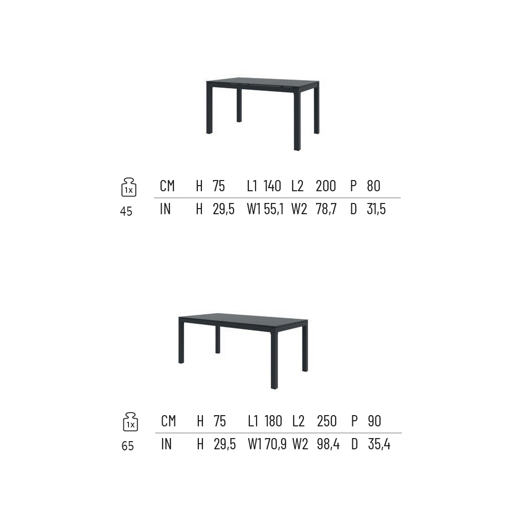 - L 140/200 x T 80 x H 75 cm (1 Verlängerung von 60 cm);