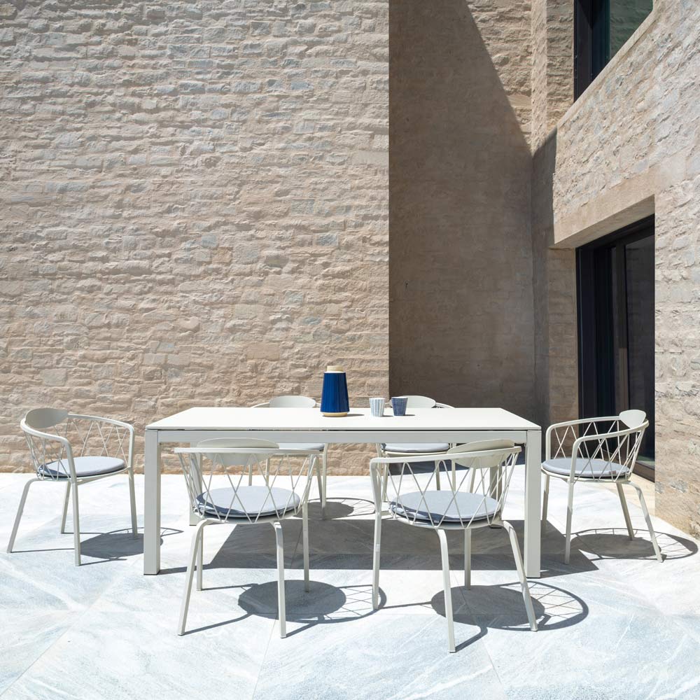 Esstisch für den Außenbereich mit selbstnivellierender Platte, ausziehbar bis 250 cm, komplett