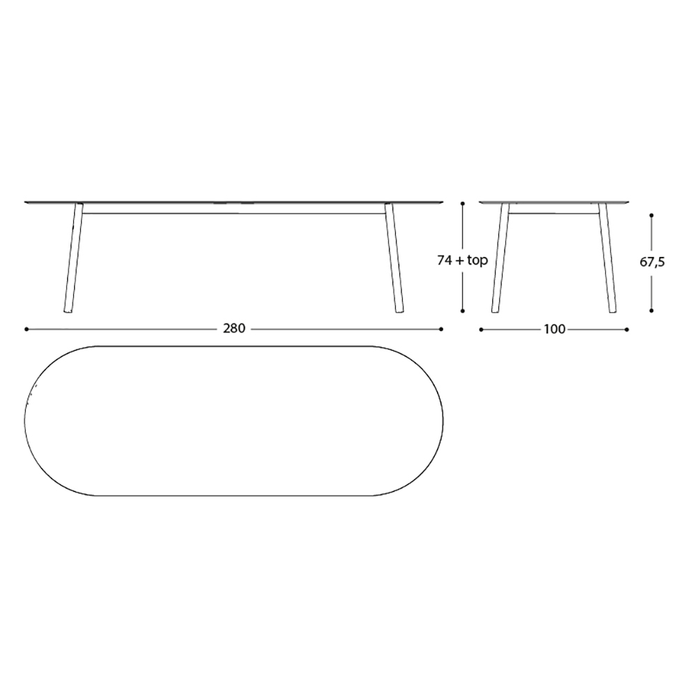 • L 280 x T 100 x H 75,2 cm;