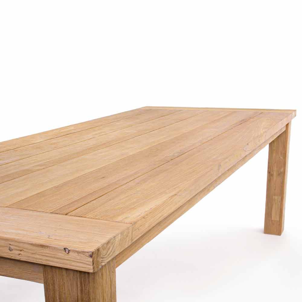 Rechteckiger Gartentisch aus natürlichem recyceltem Teakholz für 8 Personen.