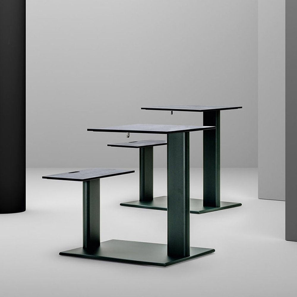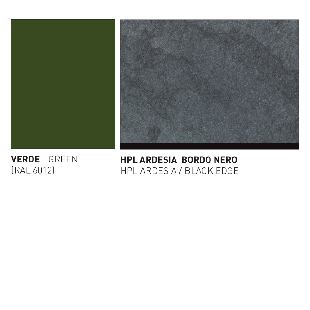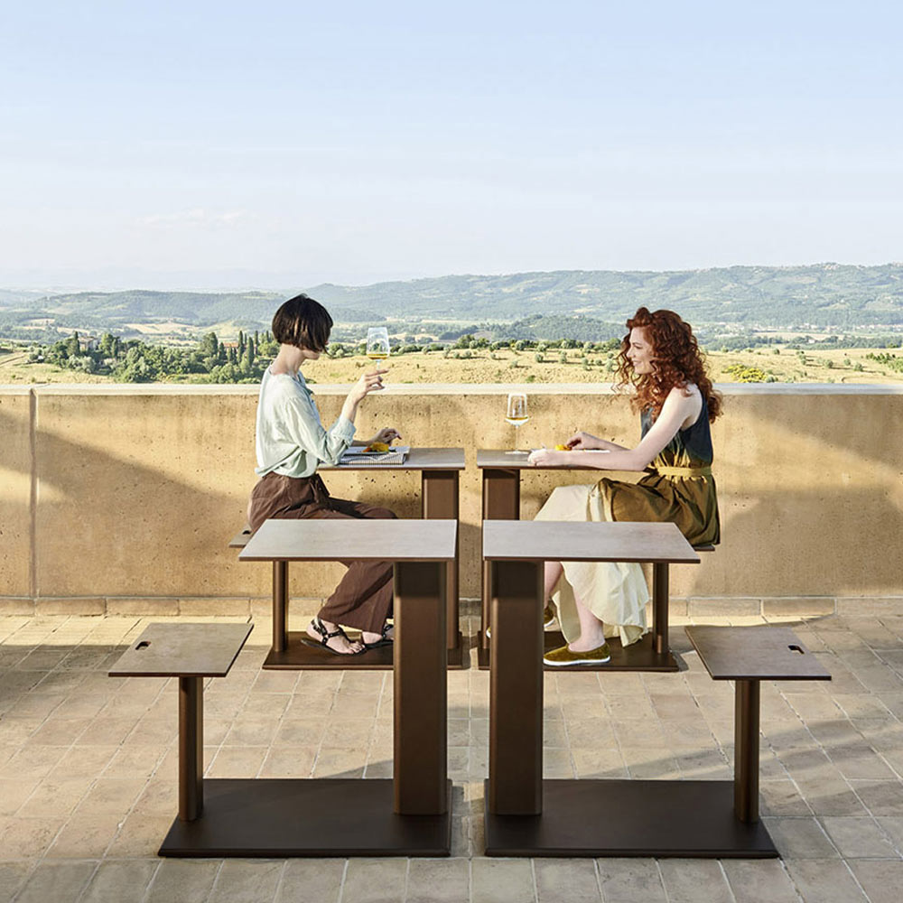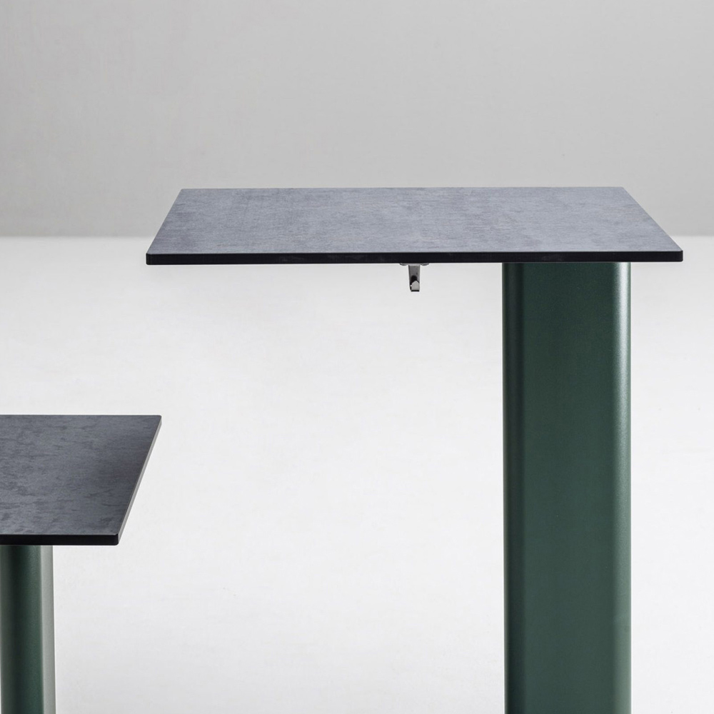 Tisch mit verbundener Sitzfläche aus Aluminium und Platte aus farbigem HPL Made in Italy.