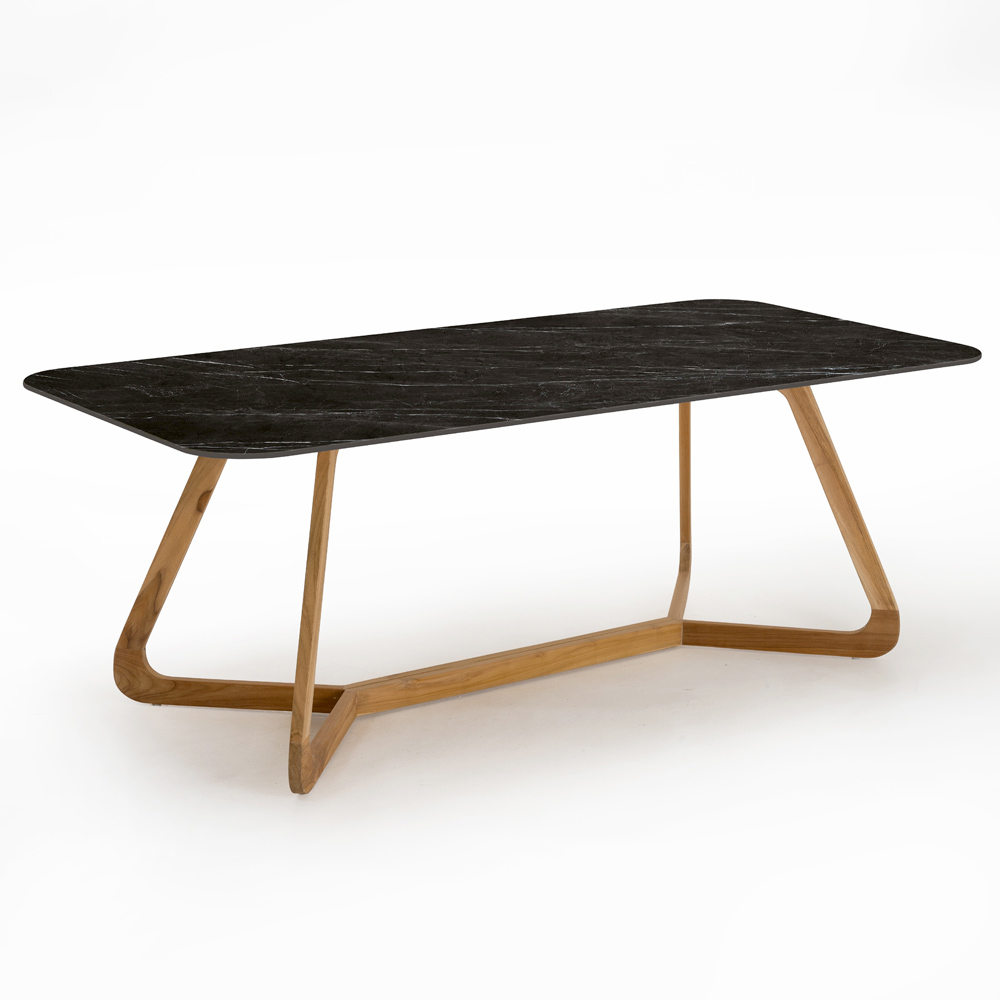 Rechteckiger Gartentisch aus Holz und Keramik, Made in Italy
