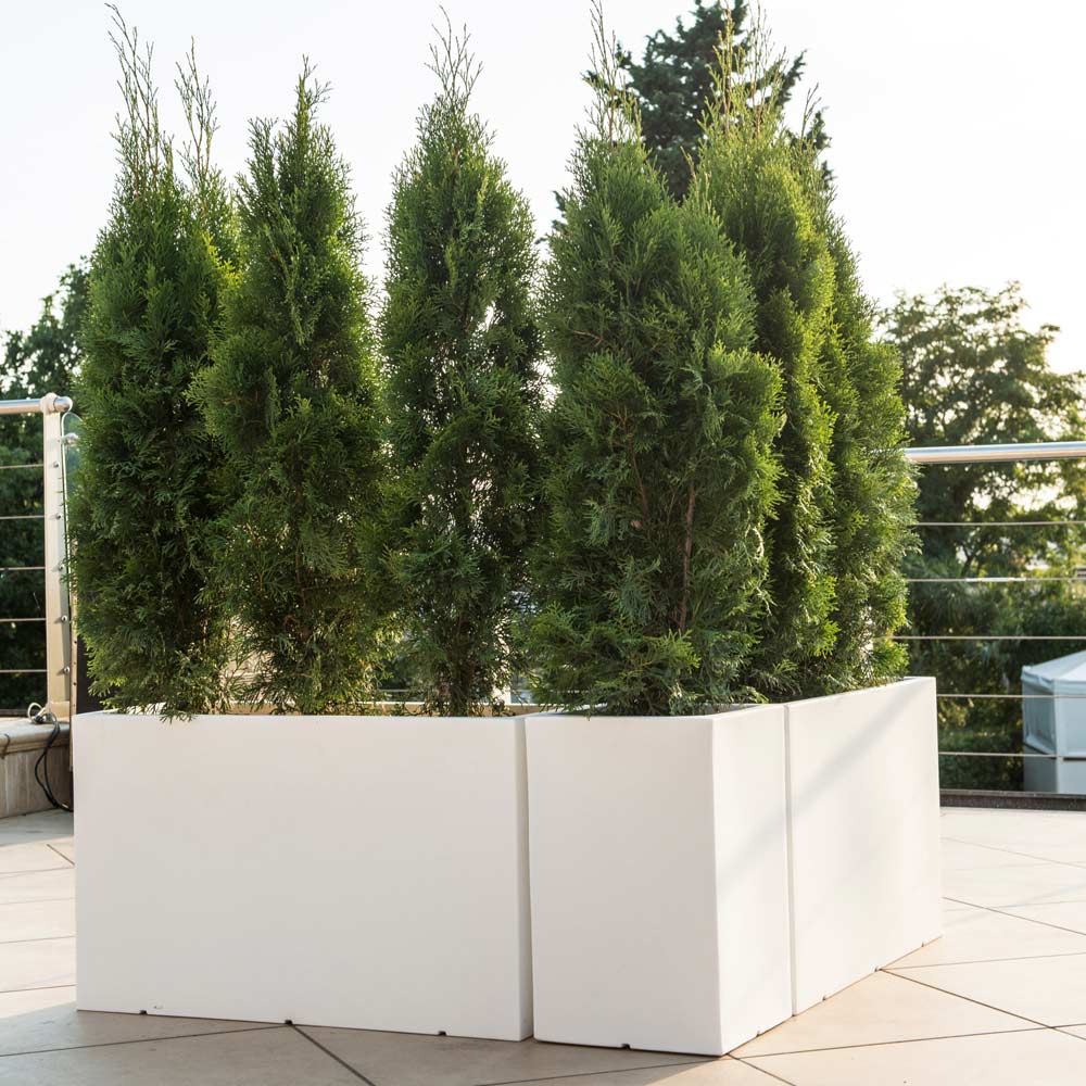 Vase oder Raumteiler für Gärten , Terrassen und Außenbereiche. Robust und geräumig, ist es ideal, um Räume elegant zu unterteilen. Hergestellt aus Polyethylen, ist es
