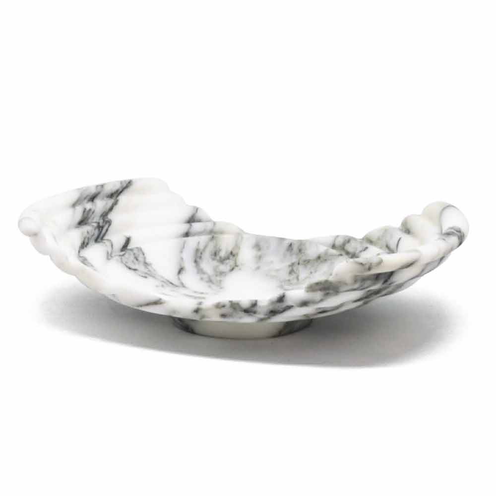 Dekoratives Tablett vollständig aus Arabeskenmarmor, einer Vielzahl von feinem weißen Marmor mit dunkelgrauen Adern, genannt "Arabesken".