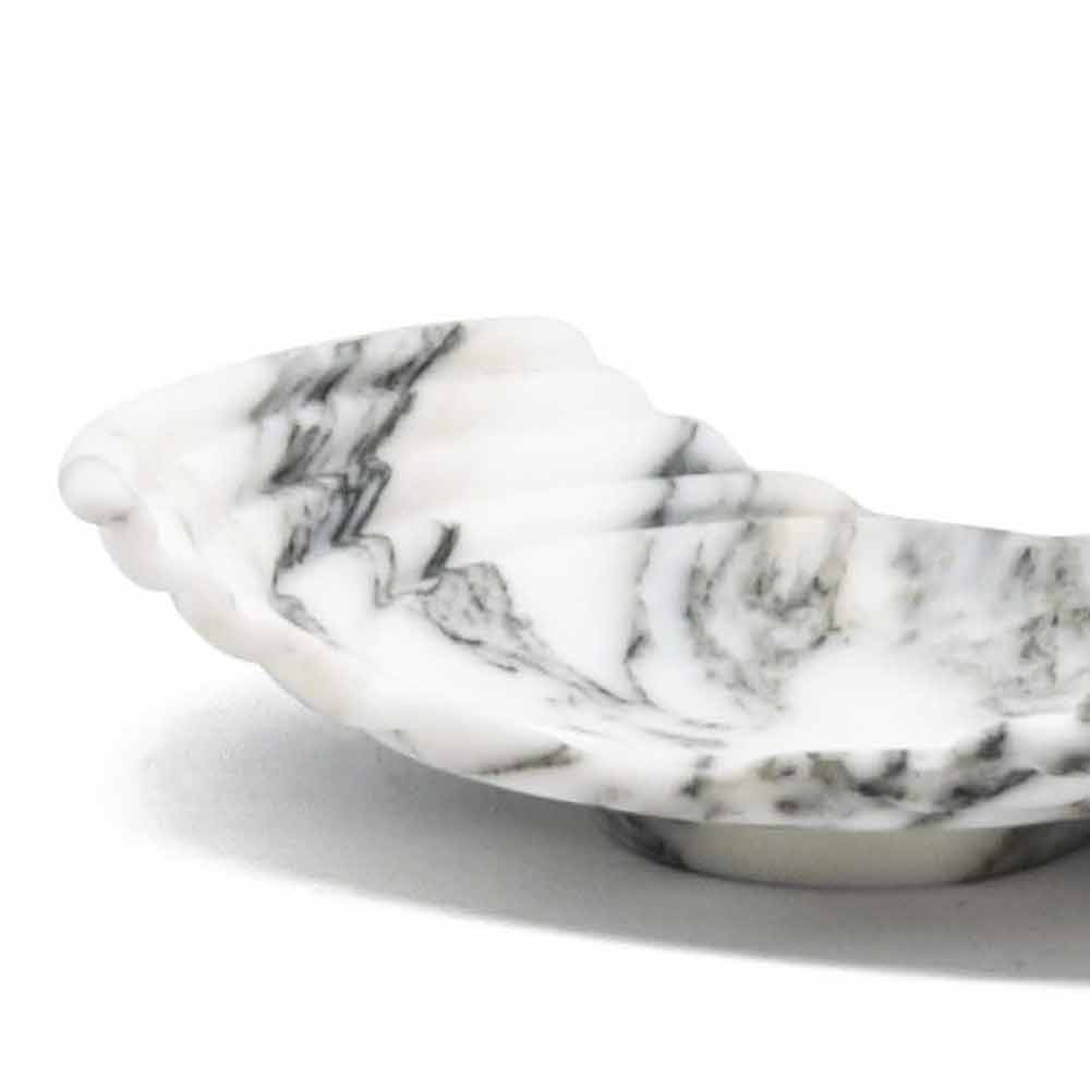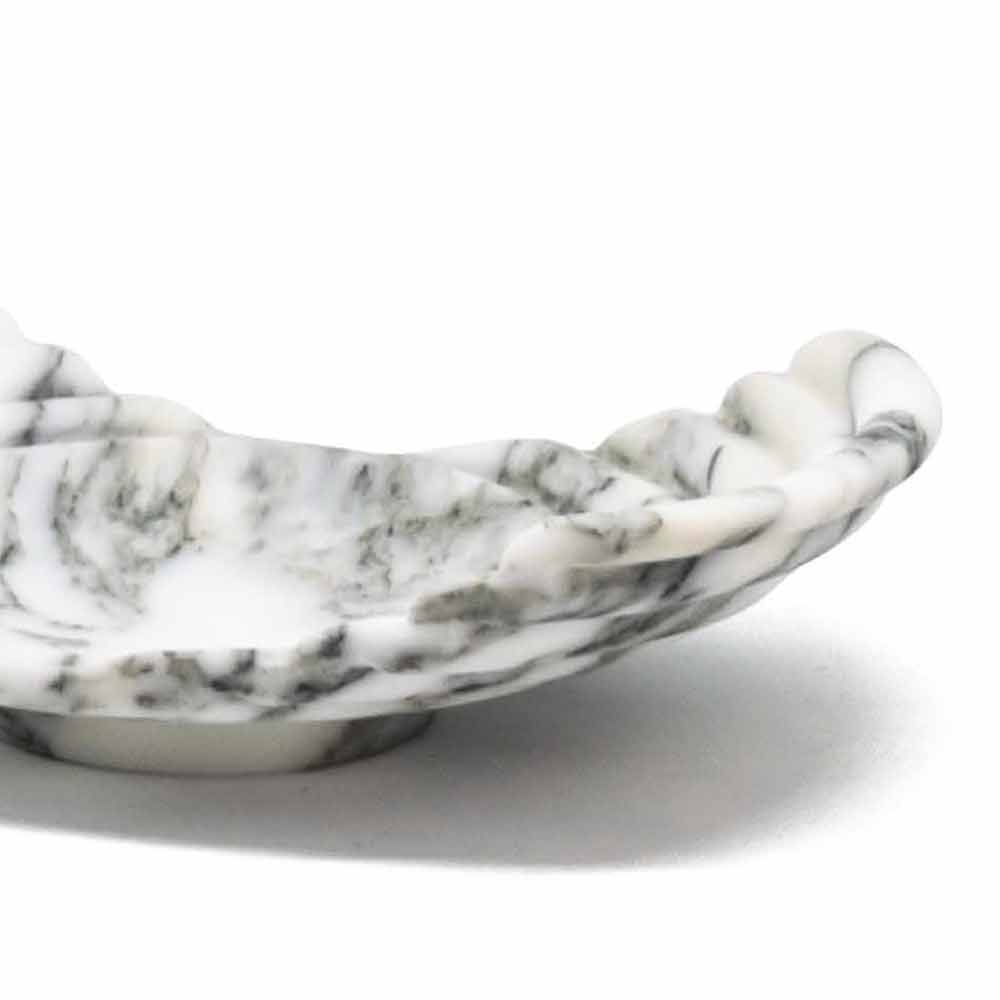 Gebogenes dekoratives Designtablett aus hochwertigem Arabeskenmarmor Made in Italy.