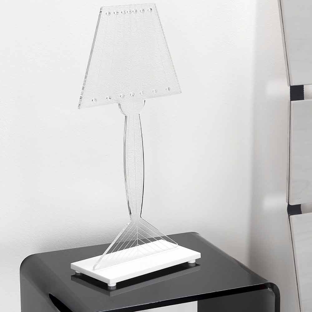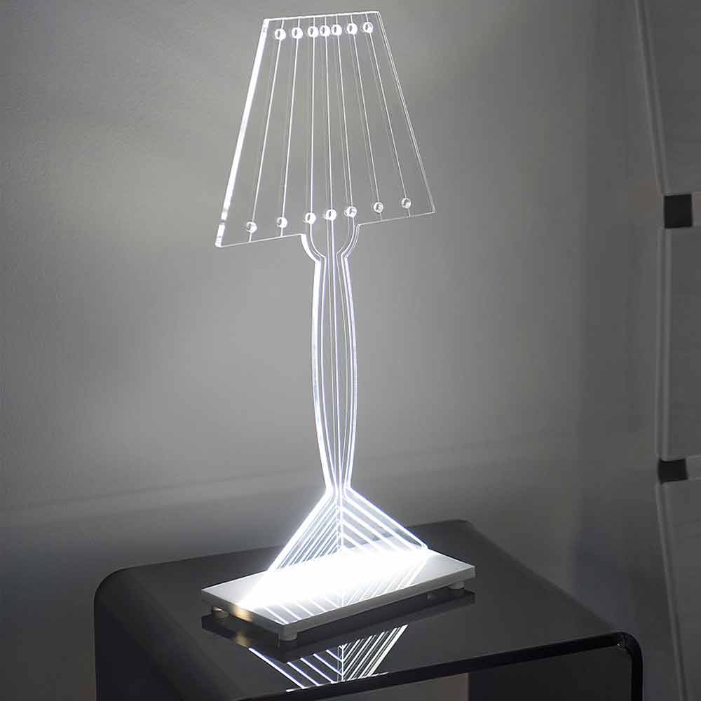 Elegante geformte LED-Tisch- / Nachttischlampe aus PMMA-Plexiglas, 100% aus jungfräulichem Polymer.