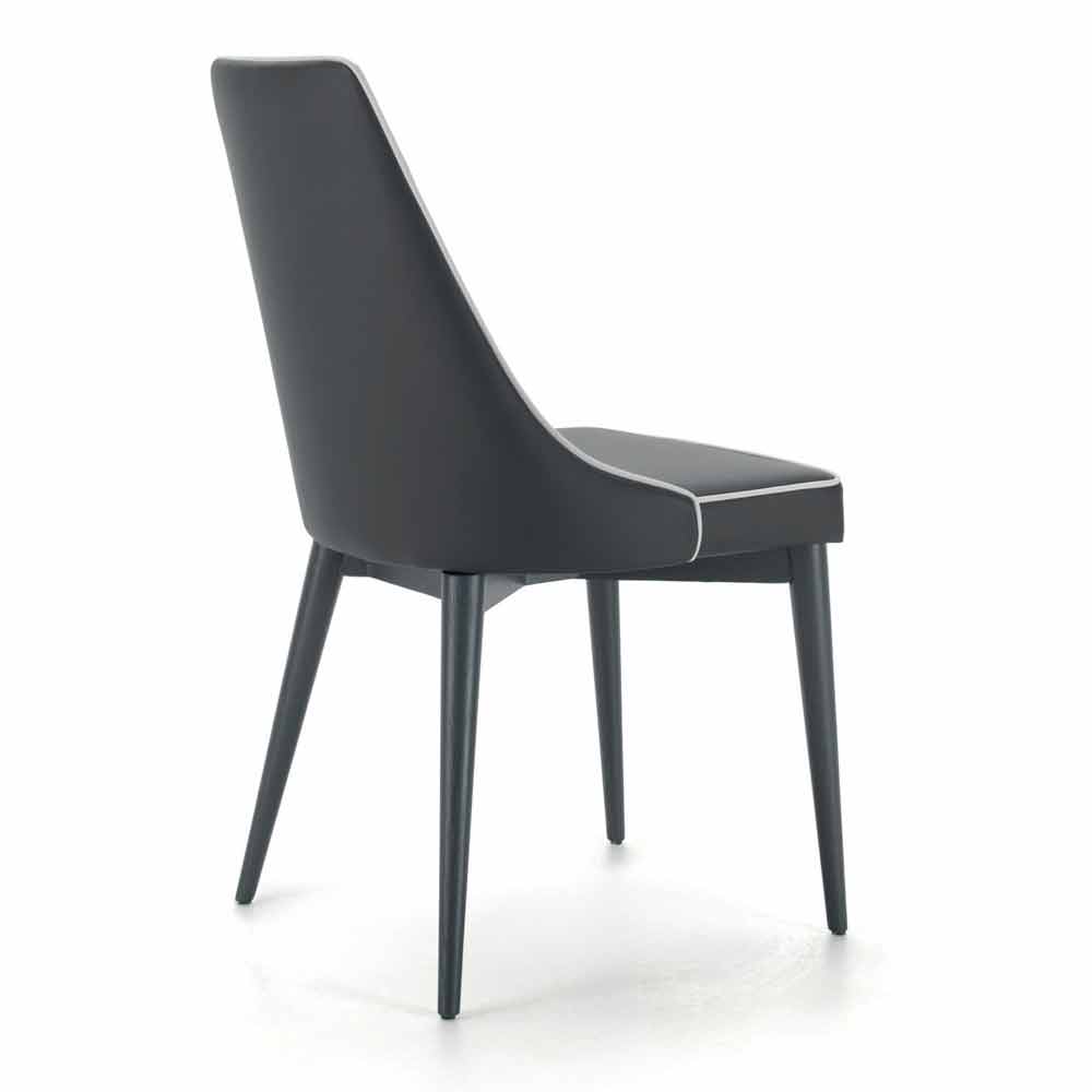 Luxuriöser gepolsterter Stuhl mit Untergestell aus Graphitstahl und Sitzfläche aus Kunstleder mit weißen Paspeln; handgefertigt in Italien.