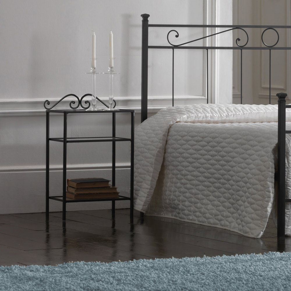 2 Nachttische mit Eisenrohrstruktur in Graphitschwarz pulverbeschichtet und 3 Glasplatten .