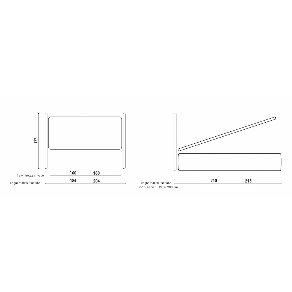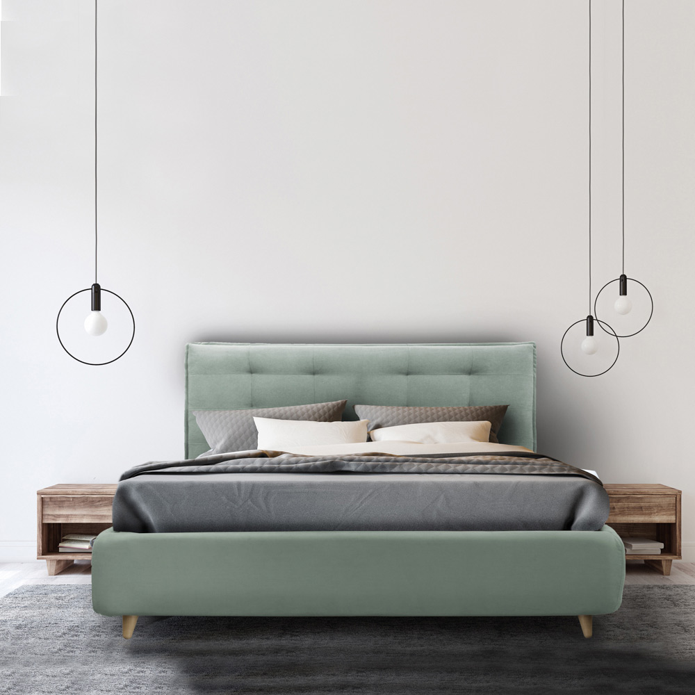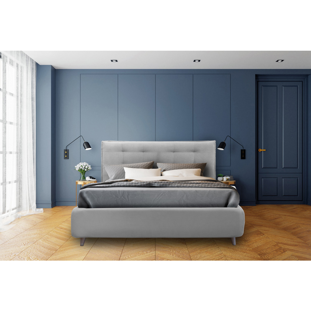 Modell ohne Ringcontainer: gepolsterter Bettrahmen mit unterstützter Basis inklusive und bequemem 11 cm hohen Fuß, der die Reinigung unter der Struktur ermöglicht.