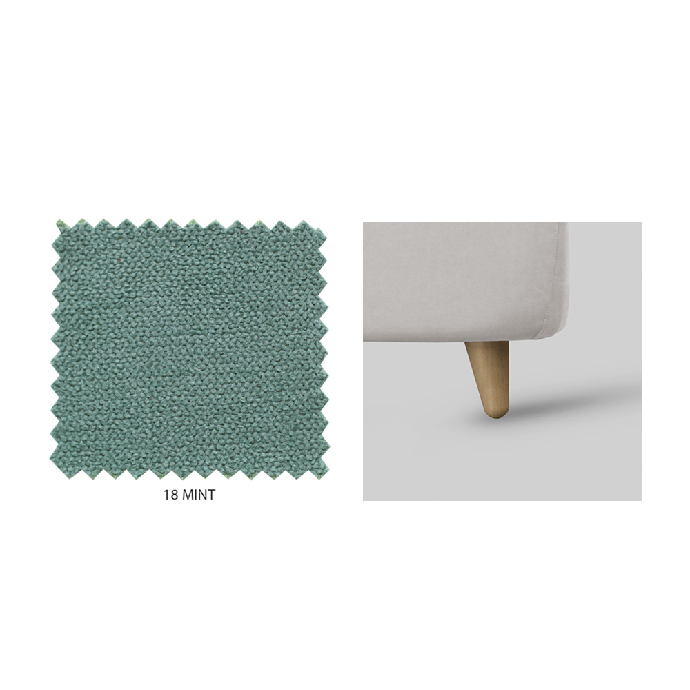 - mintfarbener Stoff mit natürlichen Holzfüßen