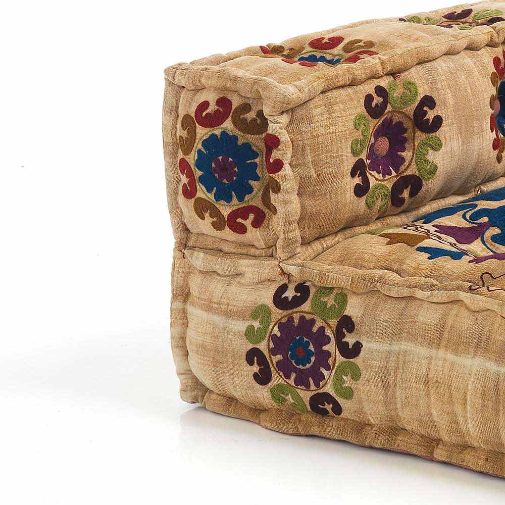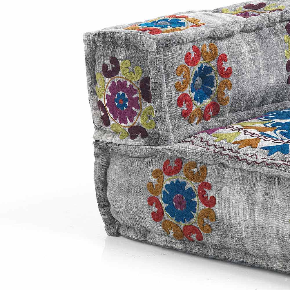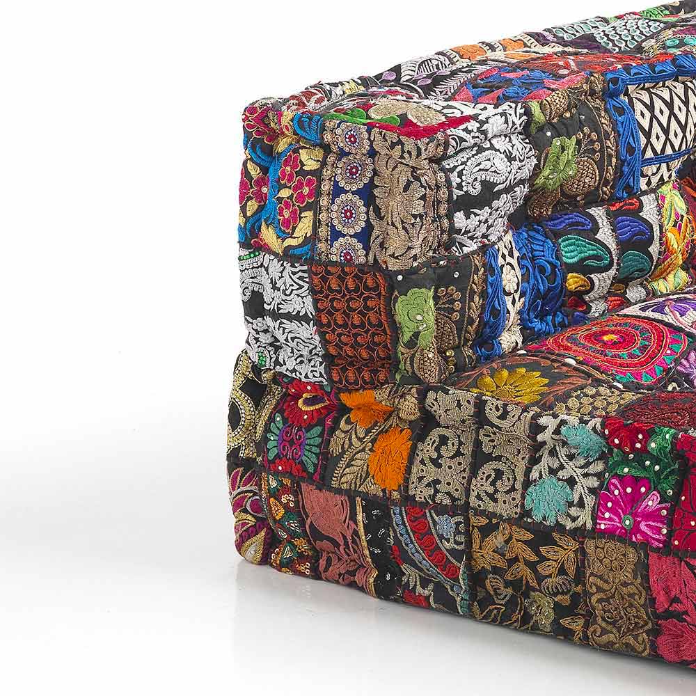 Gepolstertes Zweisitzer-Ethnosofa aus Patchworkstoff und Holzfaser