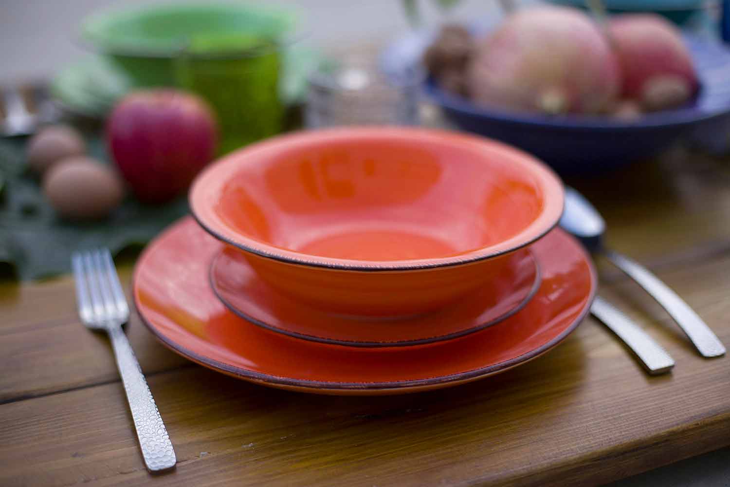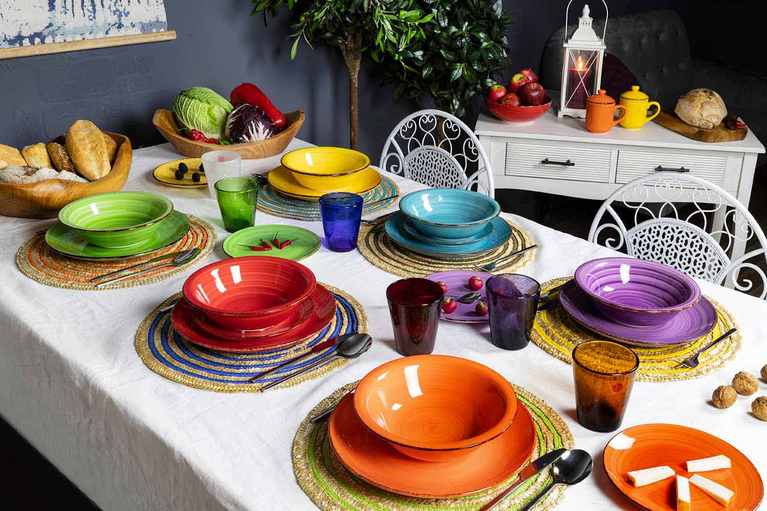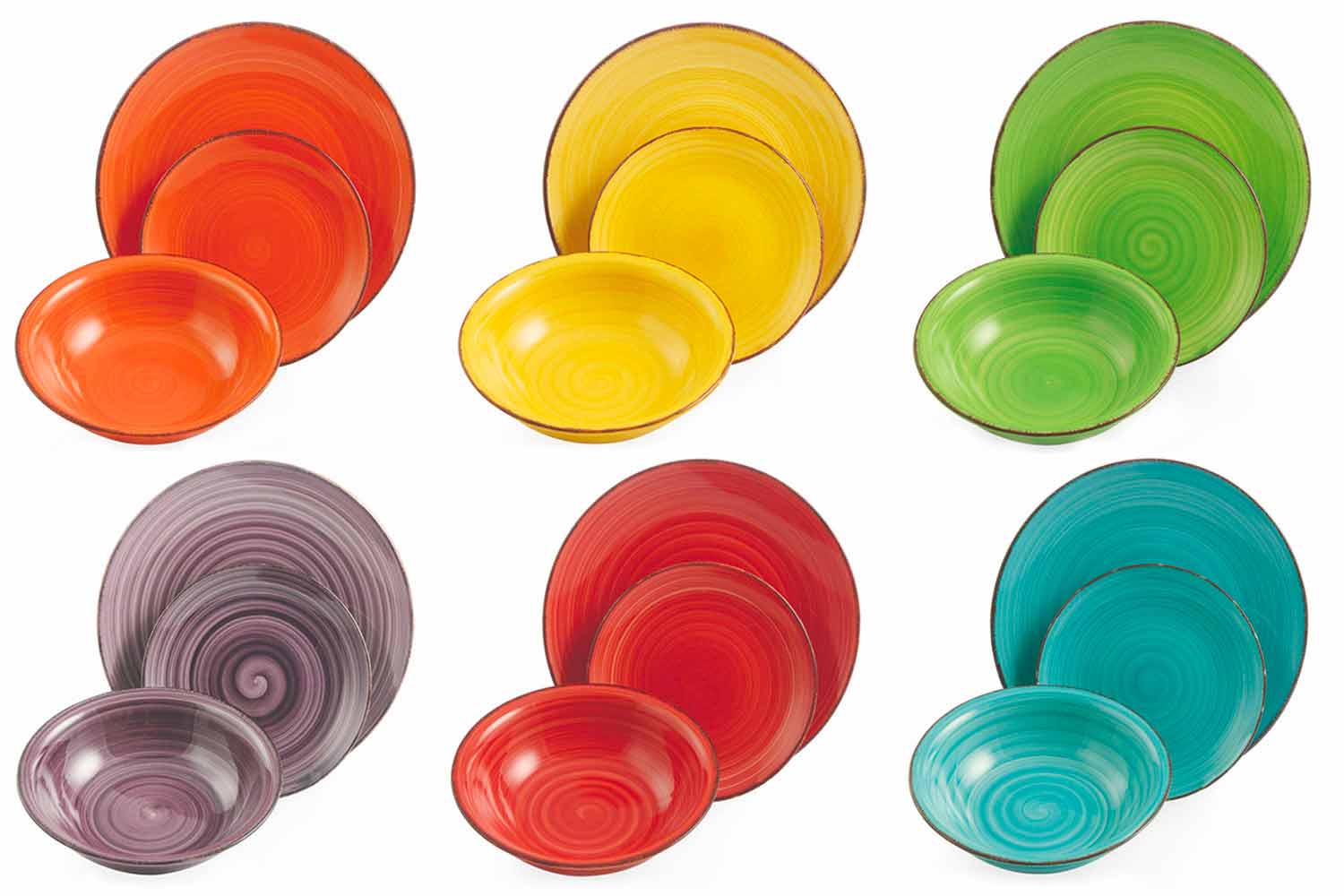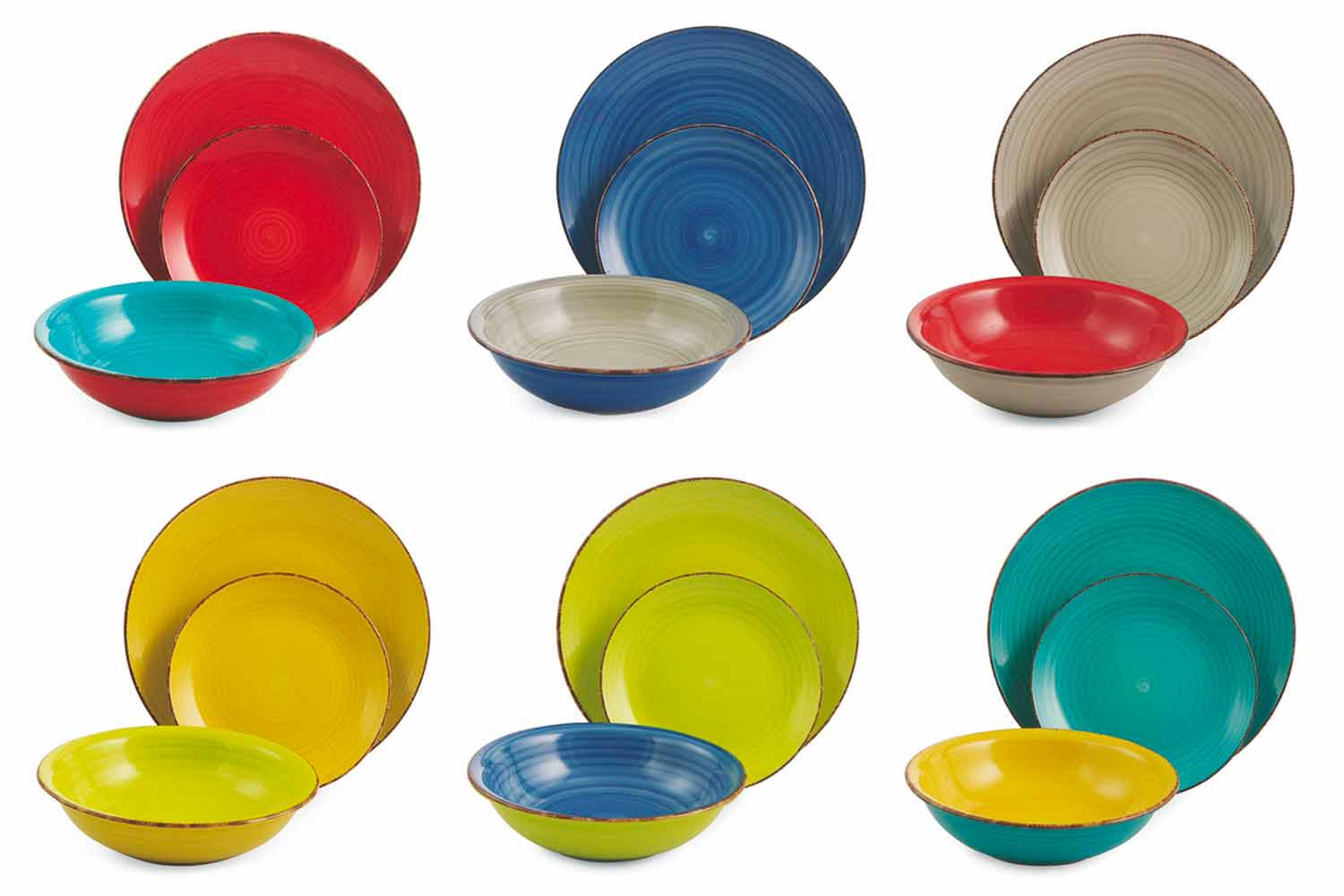 Set gefärbte Teller für Geschirr in 18 Stück.
