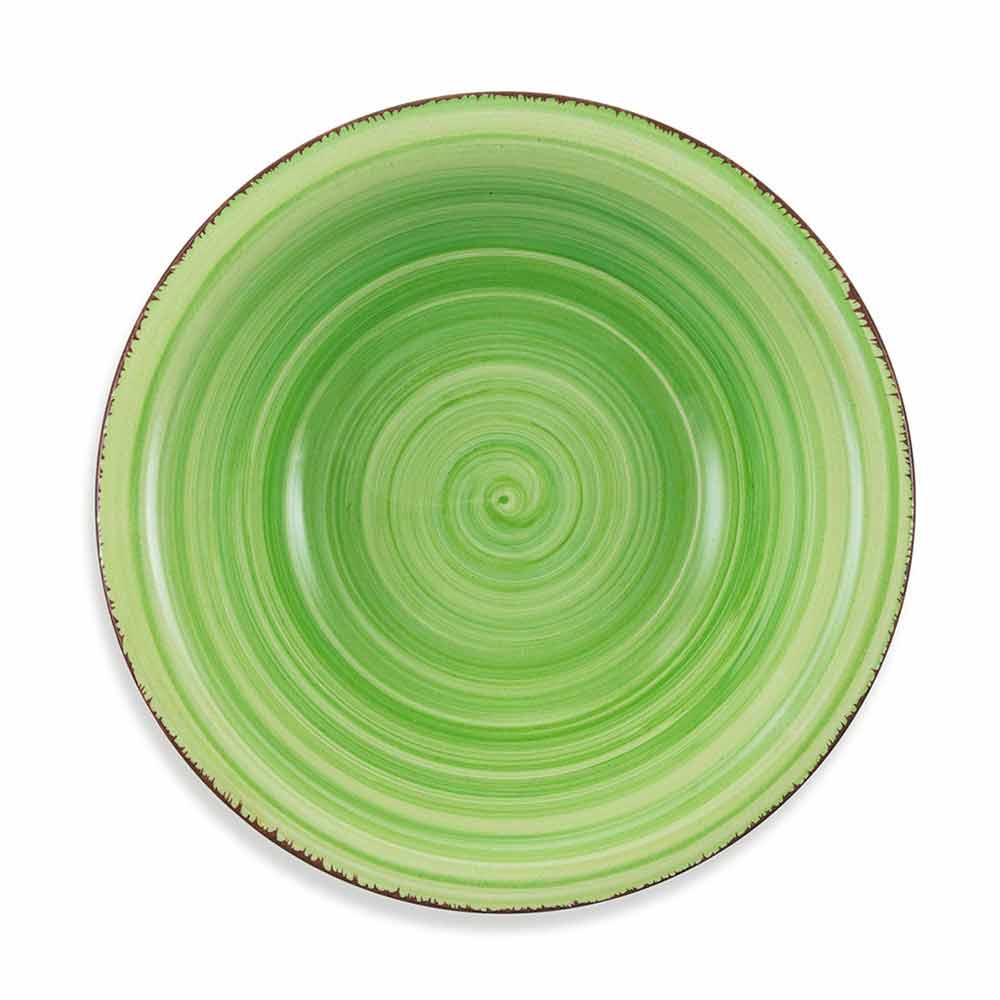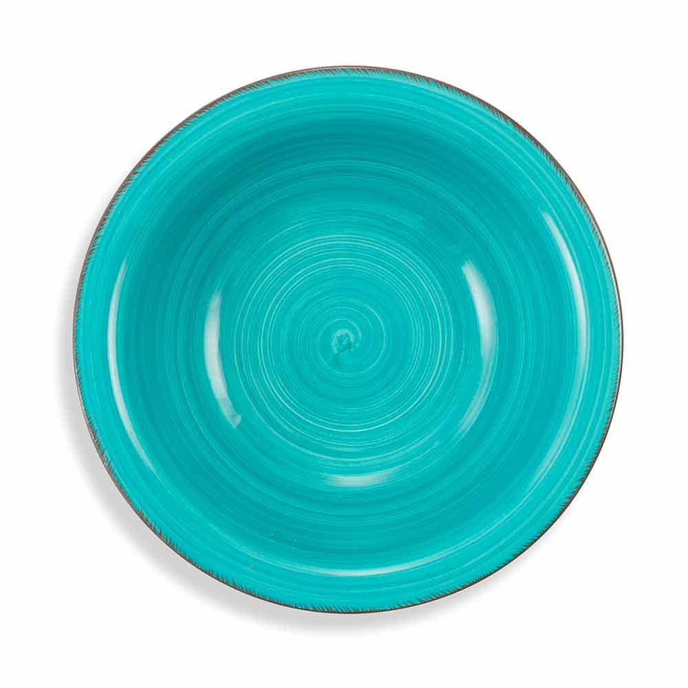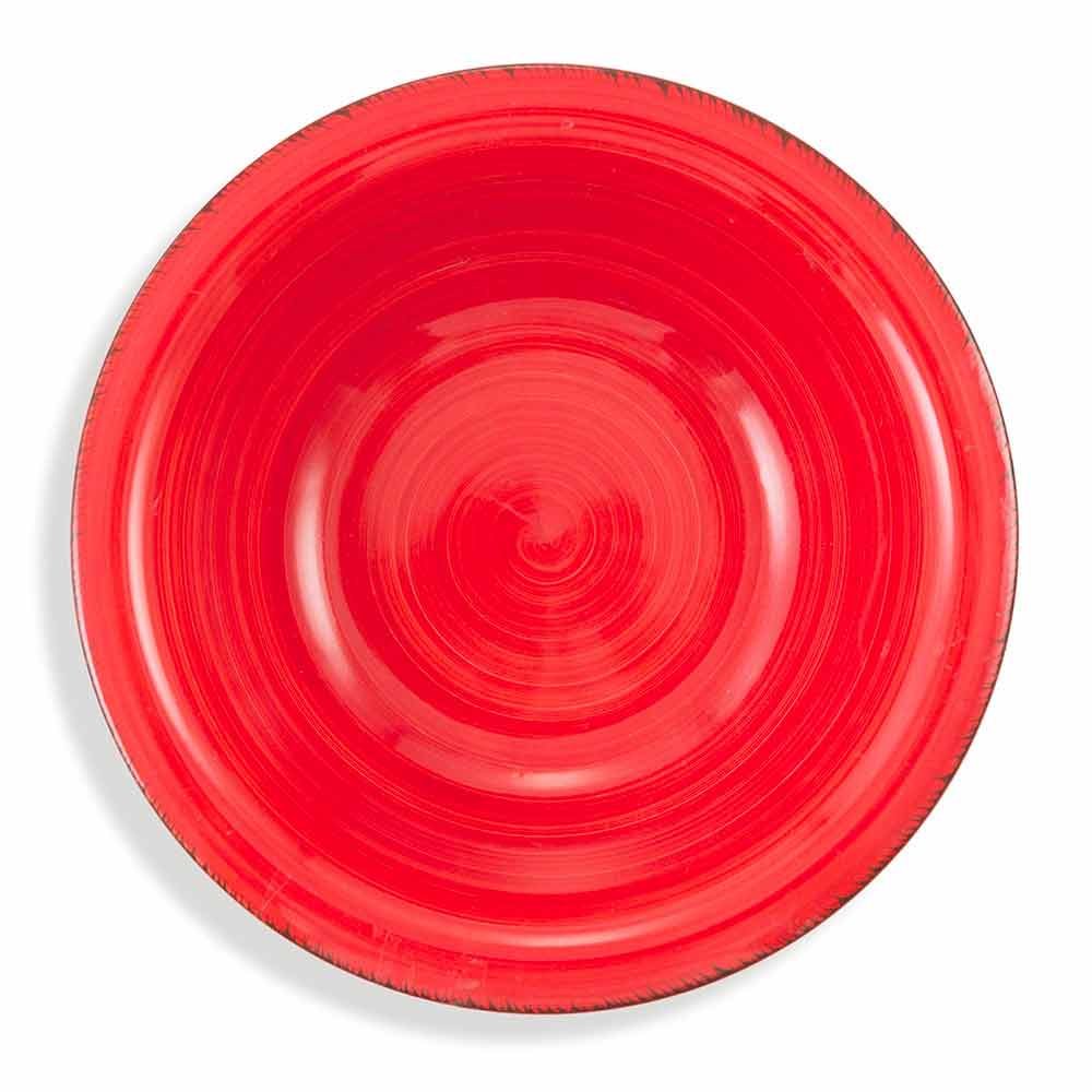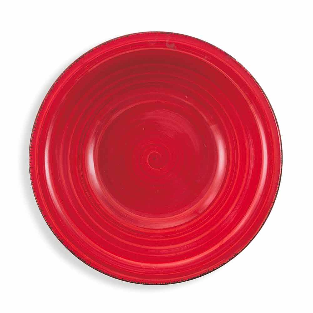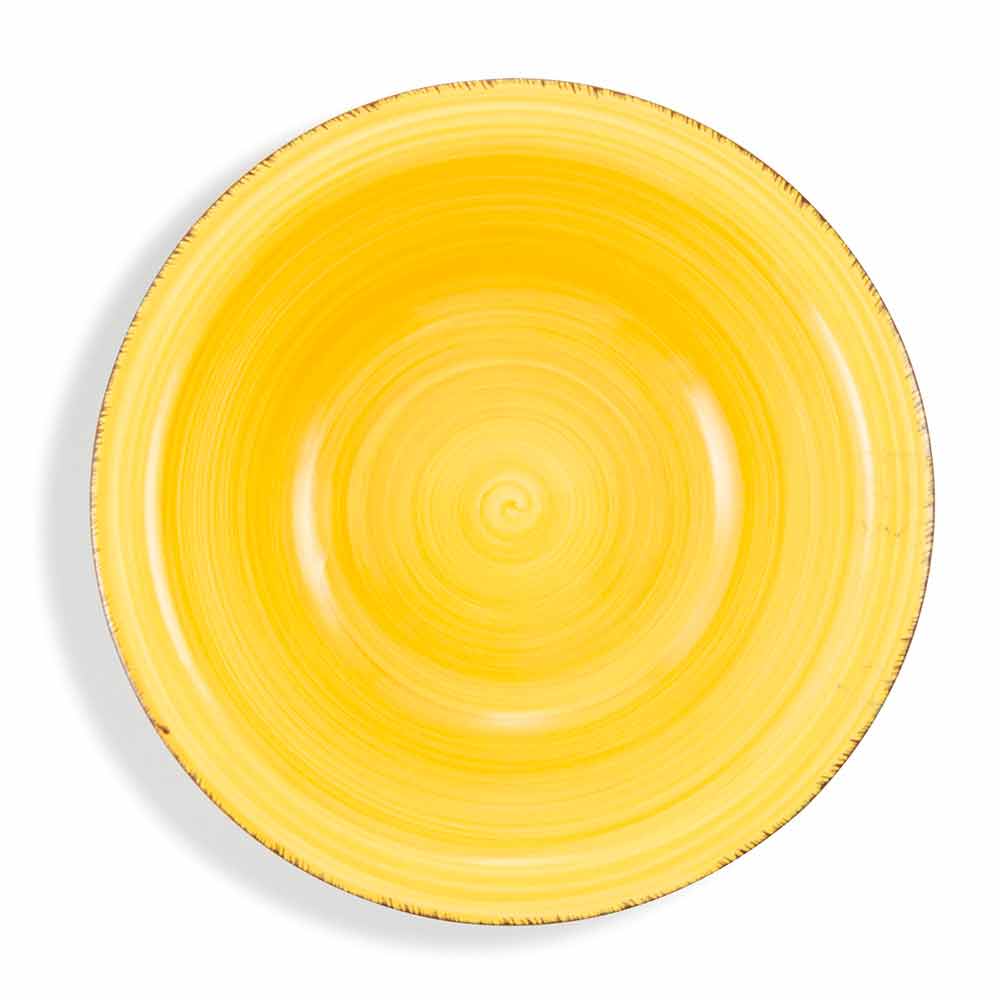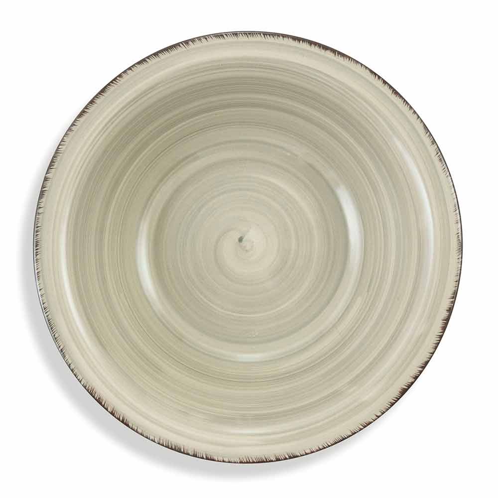 Tatsächlich trägt der tiefe Teller in seiner Unterseite nur die gleichen Farben wie der flache Teller und der Obstteller.