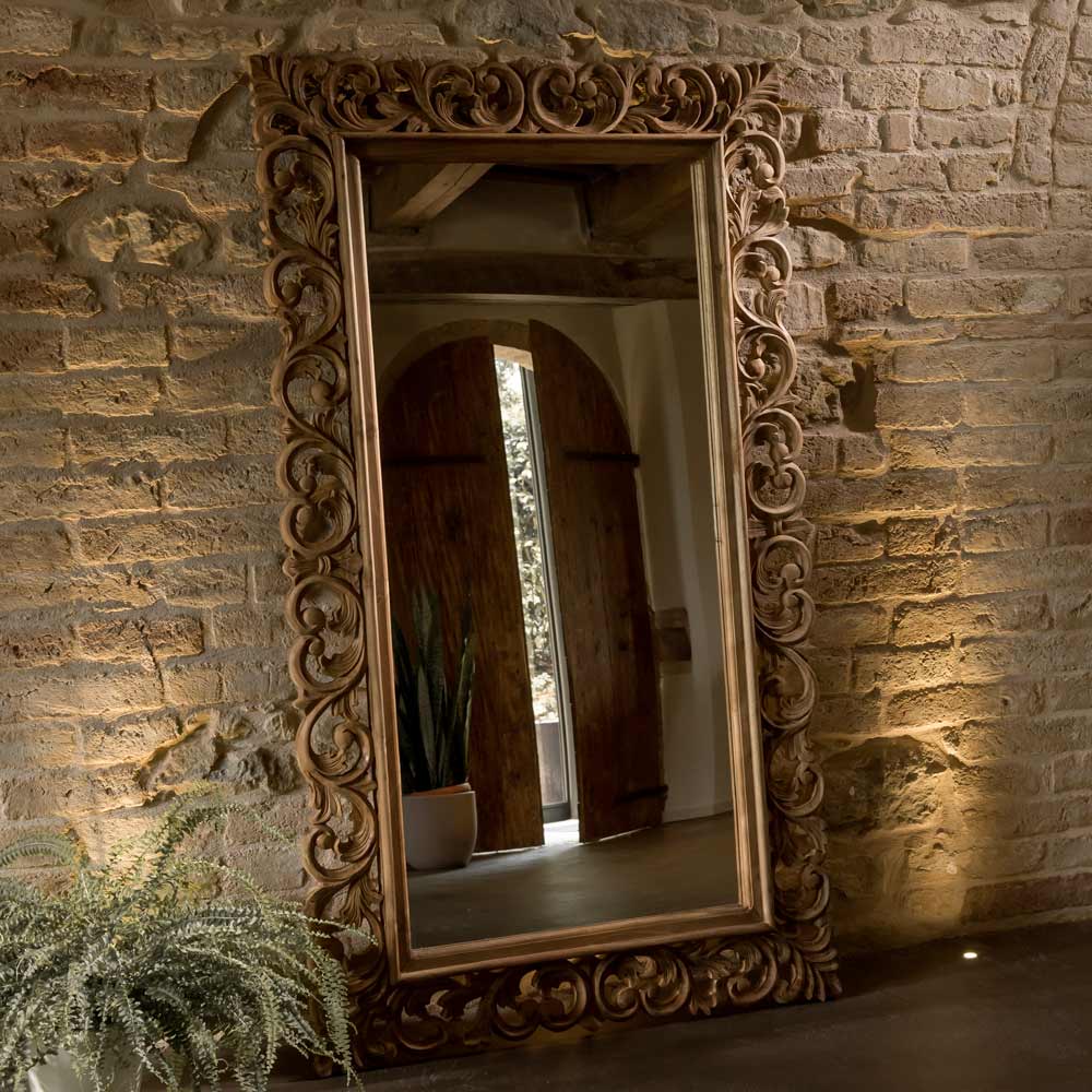 Geschnitzter Spiegel aus massivem Teakholz - Auguste