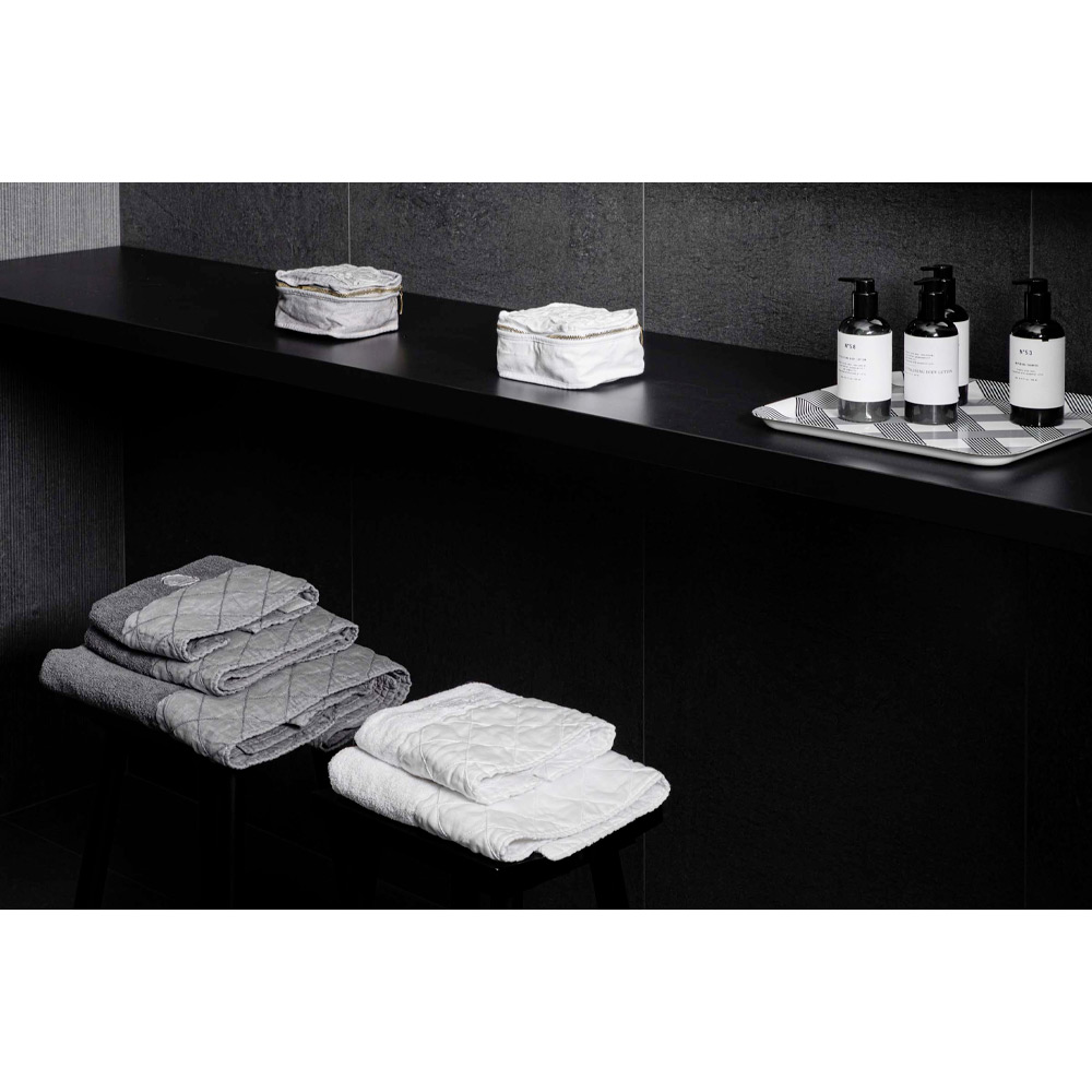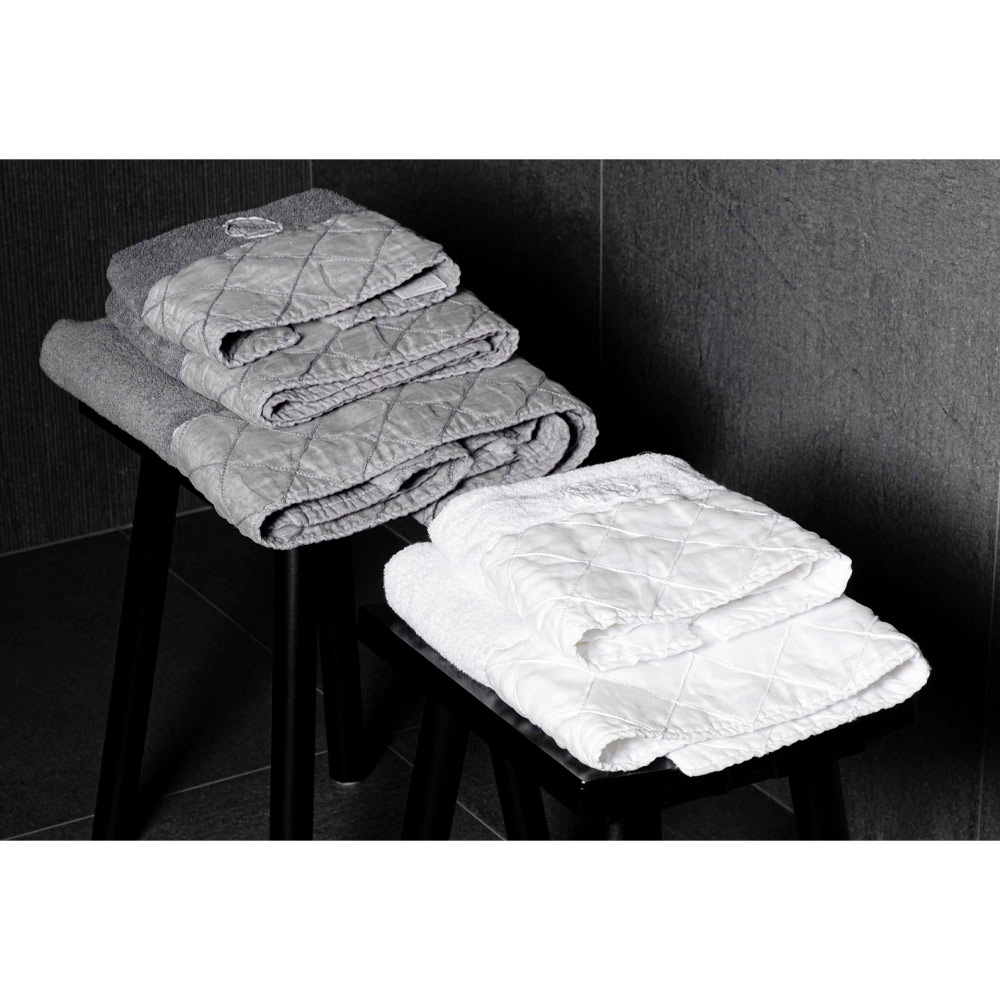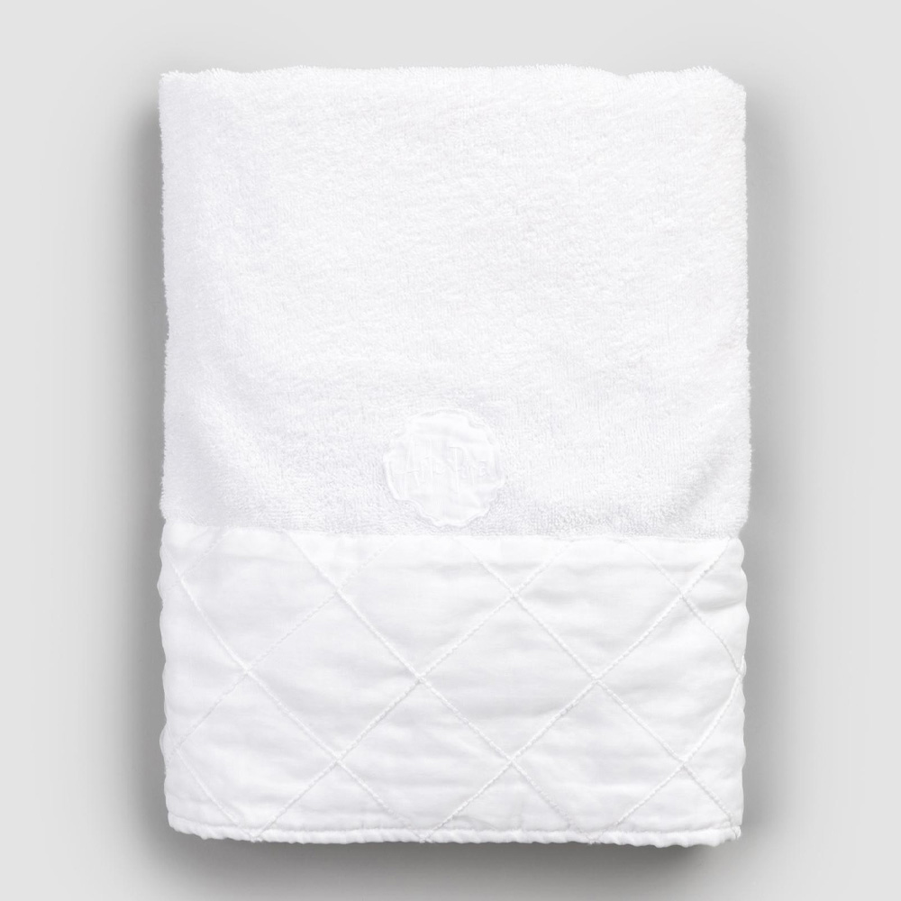 Weißes Baumwollfrottee-Gesichtstuch mit luxuriöser geometrischer Dekoration, hergestellt in Italien.
