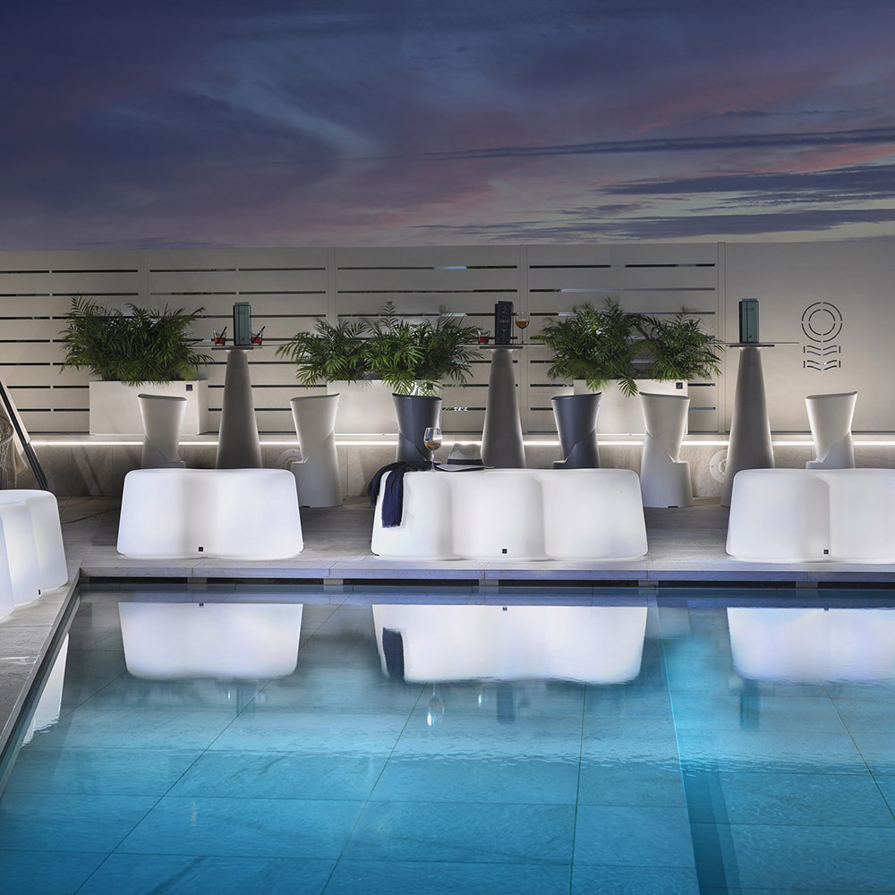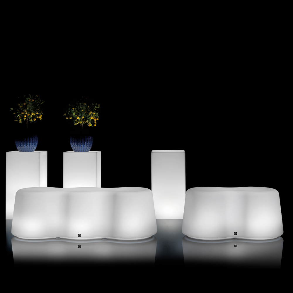 Die leuchtende Bank aus Polyethylen , die vollständig in Italien hergestellt und mit LED- Licht ausgestattet ist, ist ein Einrichtungsgegenstand, der das Ambiente der Räume durch das Hinzufügen einer exklusiven Note vervollständigt.