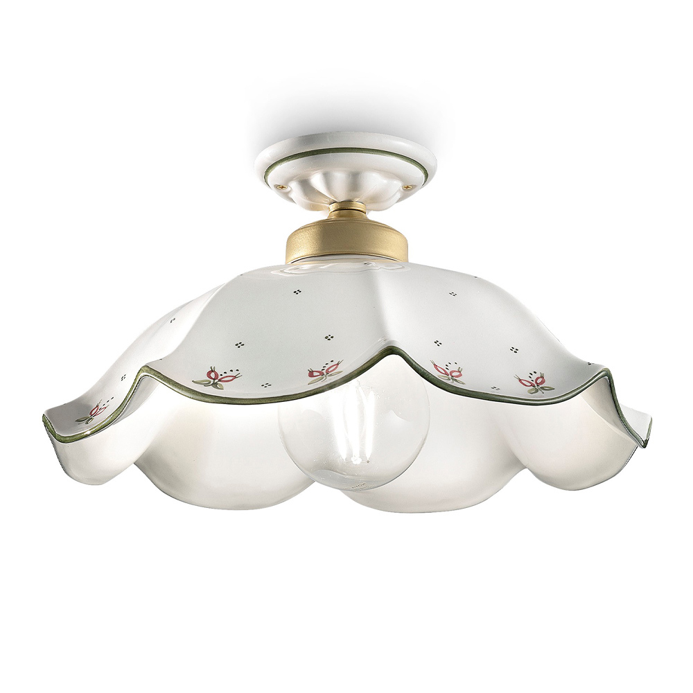 Handbemalte Vintage Deckenlampe aus gewellter Keramik, hergestellt in Italien von Ferroluce.