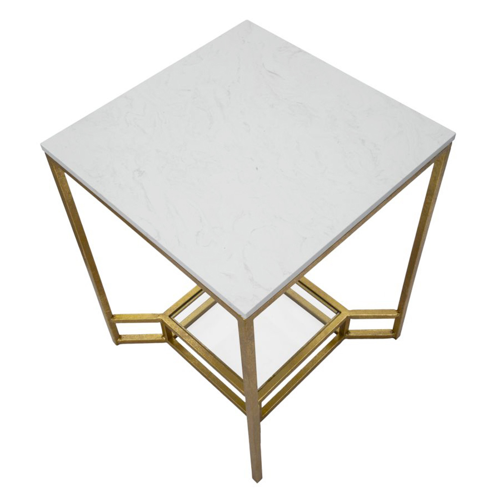 Couchtisch mit goldfarbener Eisenstruktur mit Glaseinsatz und weißer Harzplatte mit Marmoreffekt . Eine Ergänzung, die Eleganz und Funktionalität für ein optimales Ergebnis vereint und als praktische Auflagefläche und gleichzeitig als originelles Dekorationselement für den Wohnbereich fungieren kann. Sein Design wird von einfachen geometrischen Linien unterstrichen , die es besonders vielseitig machen und sich daher ideal für die Vervollständigung von Lounges mit einem raffinierten Stil für eine exklusive und raffinierte Einrichtung mit Persönlichkeit eignen.