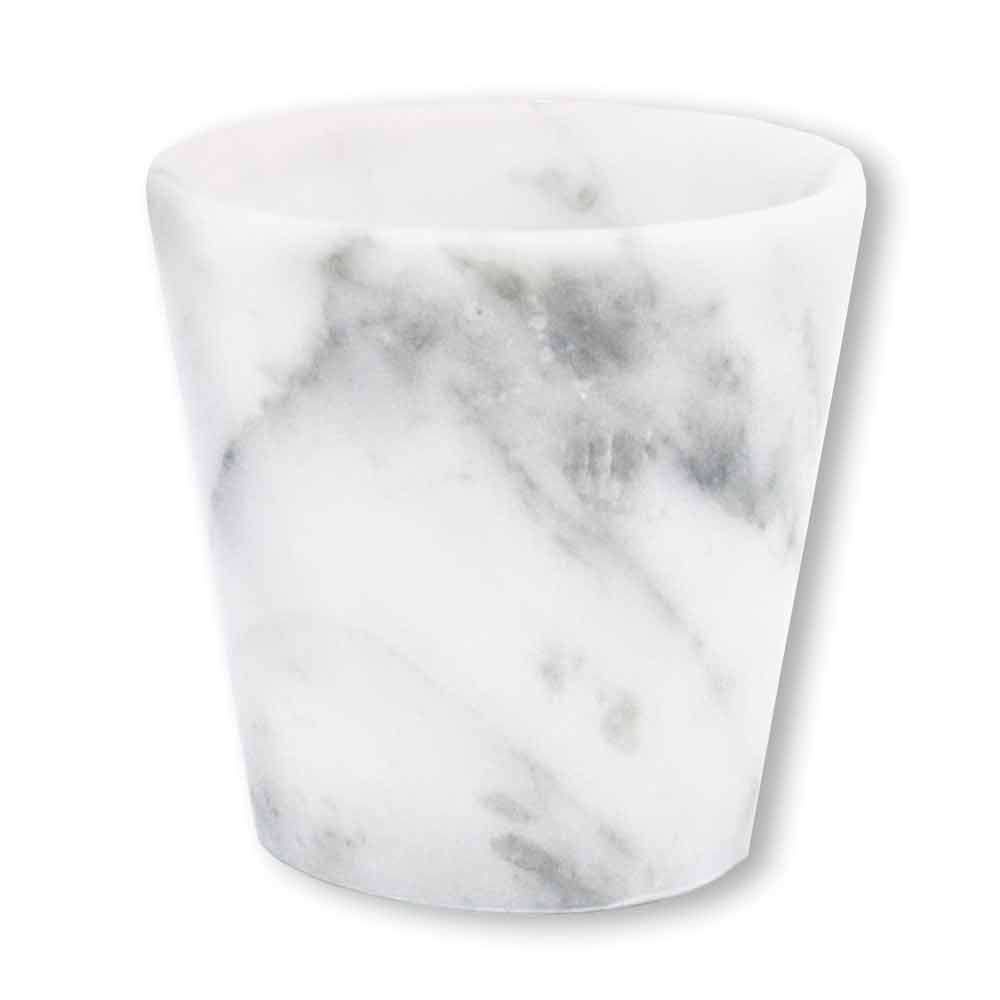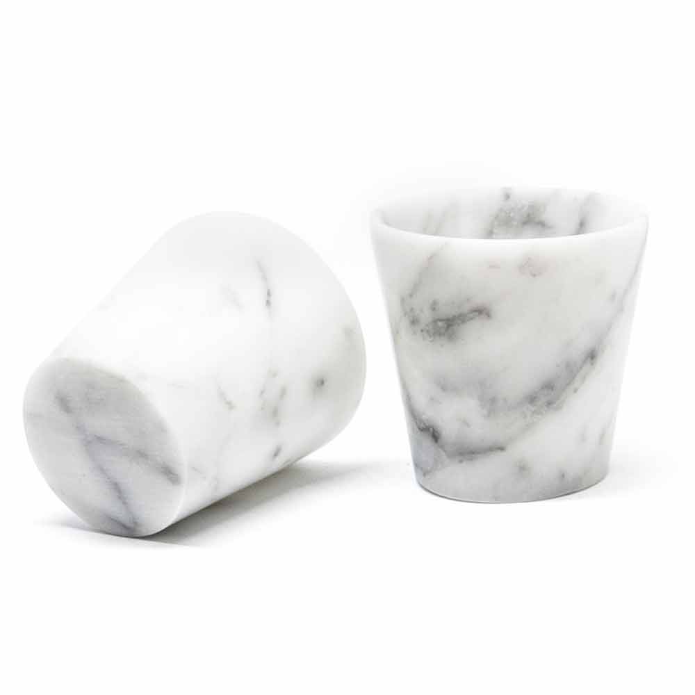 Glas für Grappa aus weißem Satin Carrara Marmor komplett Made in Italy.