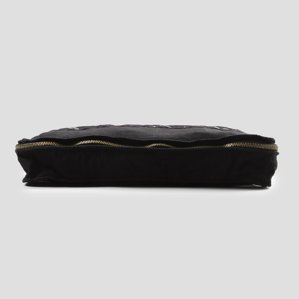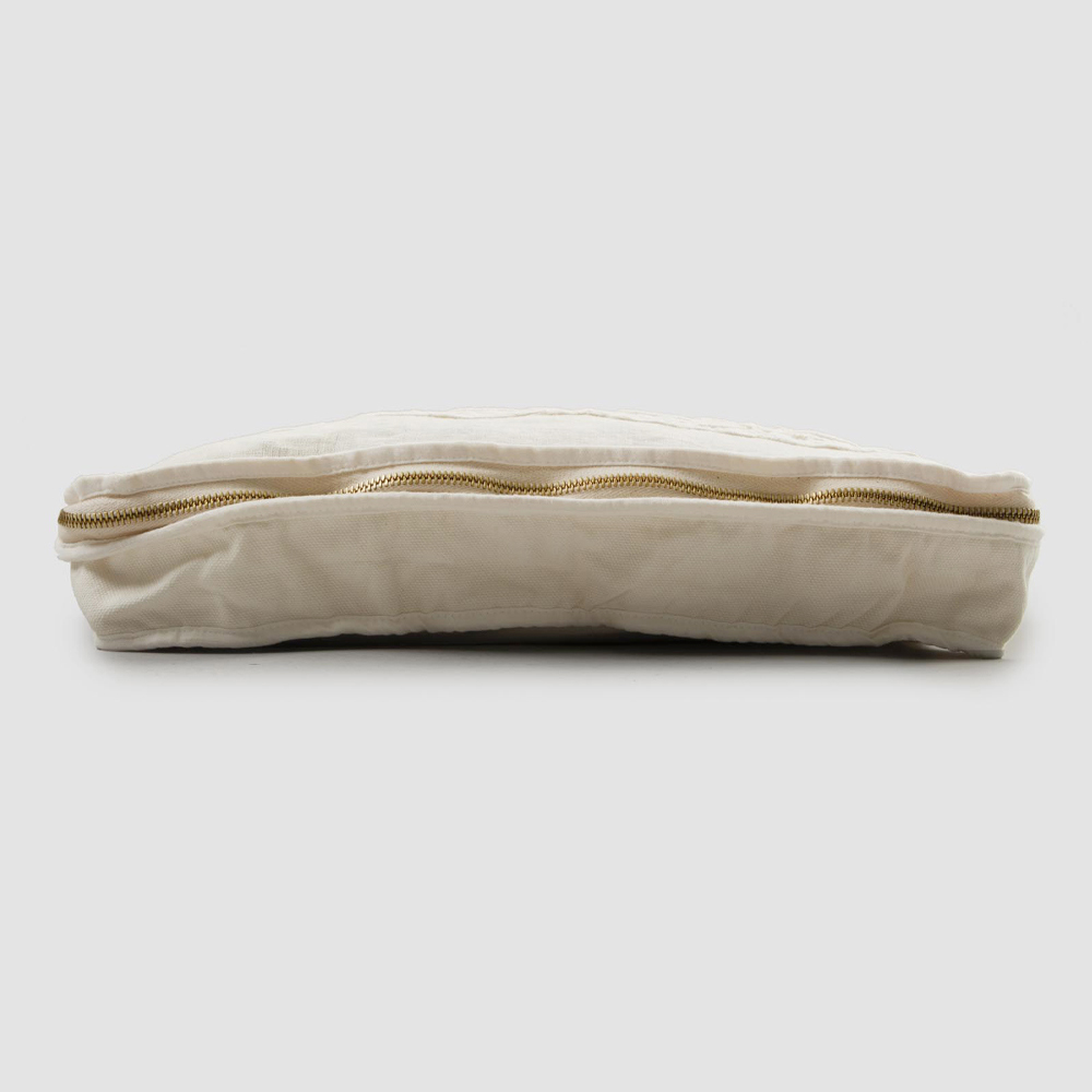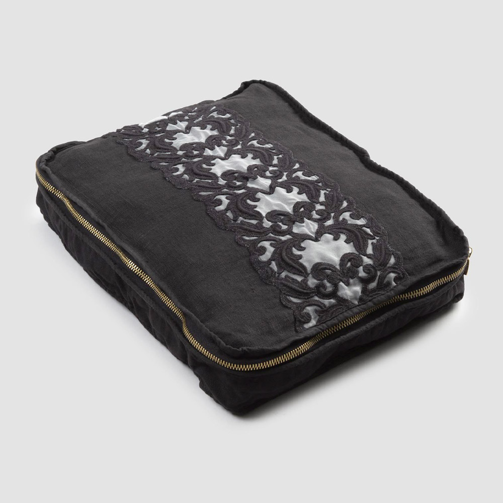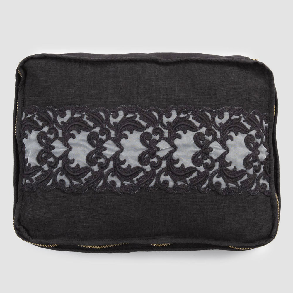 Der Wert der Tradition verbindet den modernen Lebensstil mit dieser großen rechteckigen Kosmetiktasche aus Leinen und Baumwolle mit Farnese-Spitze und Reißverschluss.