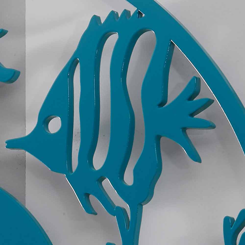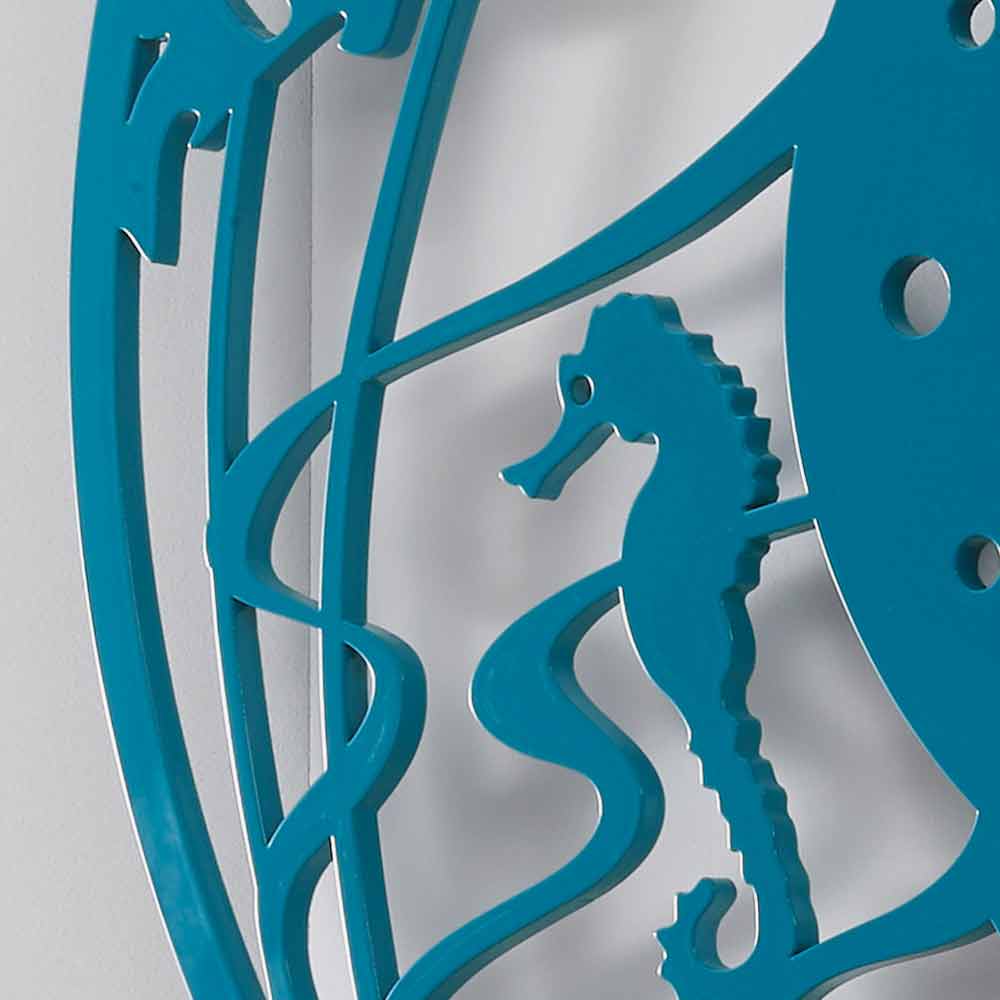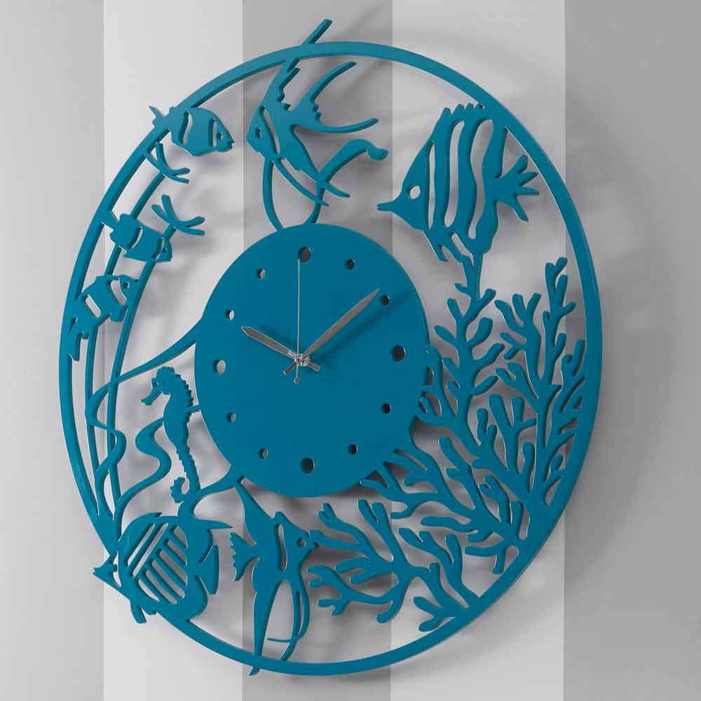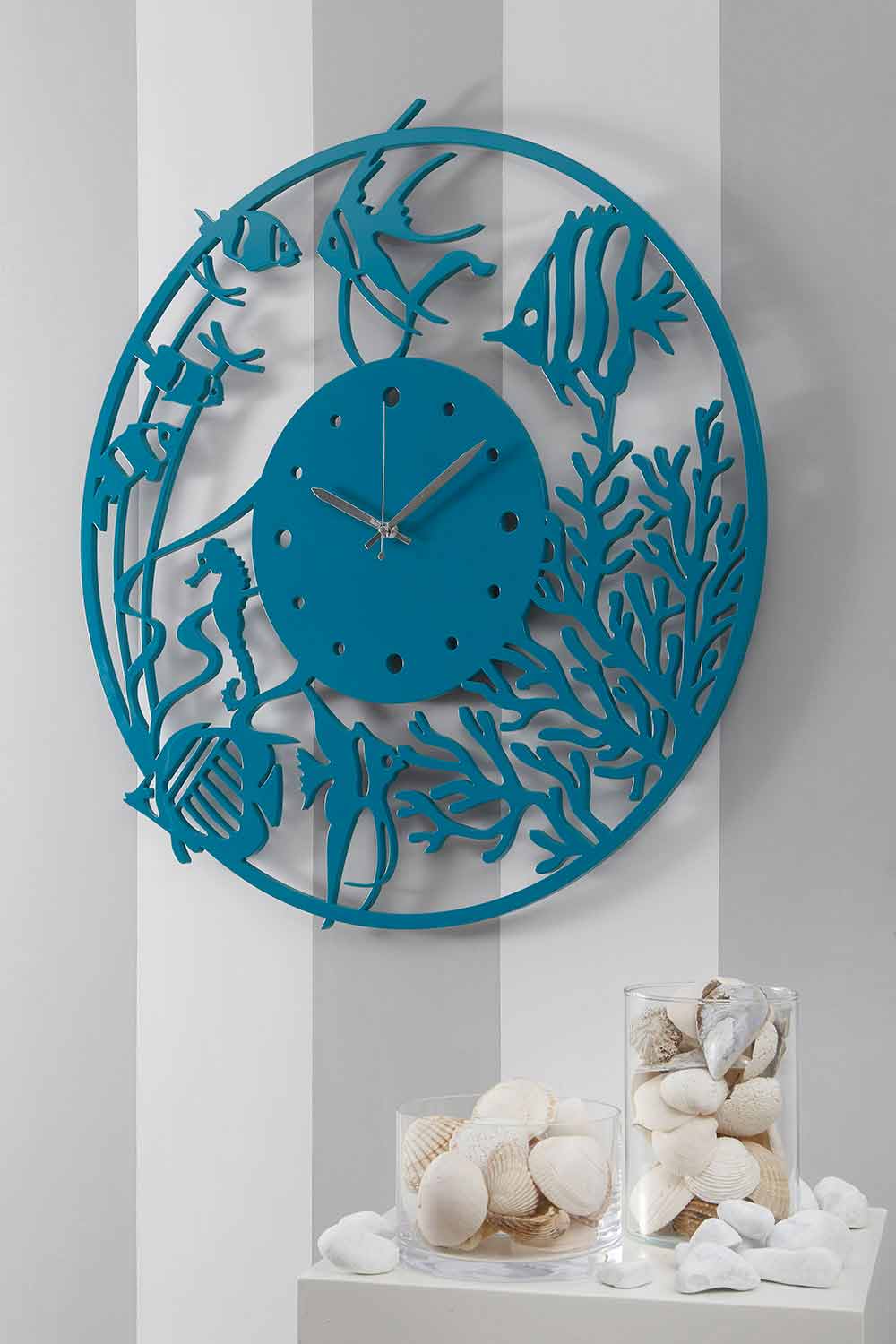 runden Wanduhr, die ein Aquarium und das Leben des Meeresbodens darstellt.