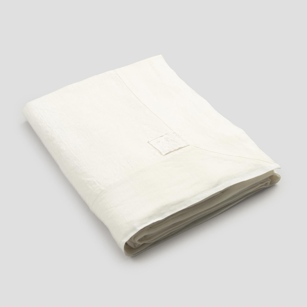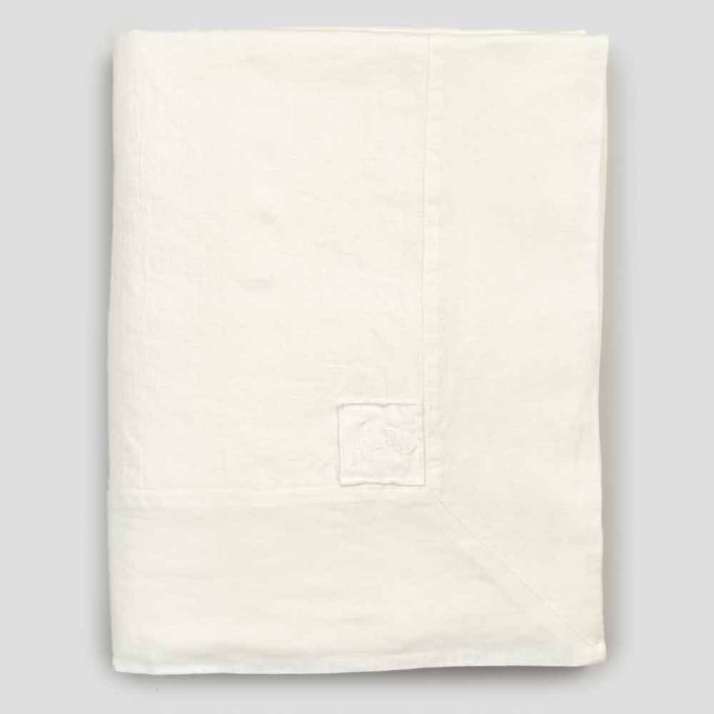 Große rechteckige schwere weiße Leinentischdecke mit gerahmten Kanten - Davinci