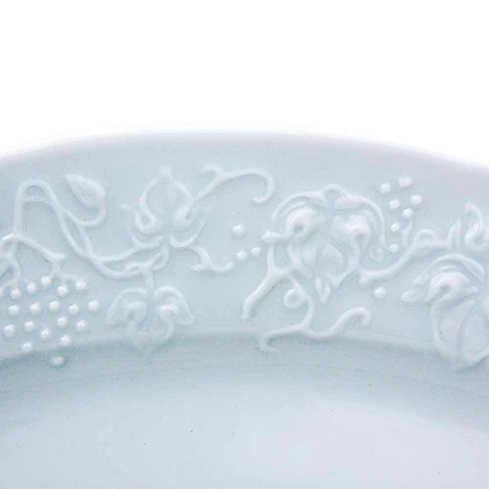skulpturale Eleganz im Relief sind die Schlüsselwörter dieser Kreationen aus hellweißem Porzellan und einer künstlerischen Reliefdekoration. Einerseits ein attraktives Design mit mehreren Formen, andererseits die charmante ländlich inspirierte Dekoration.
