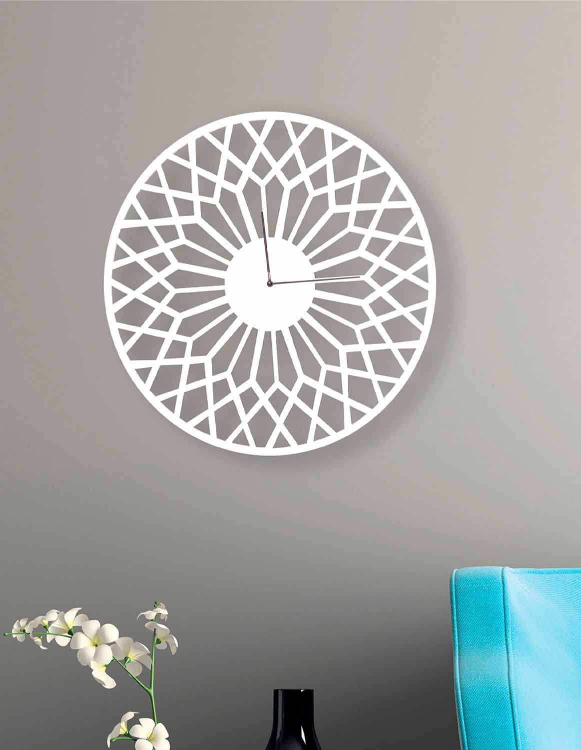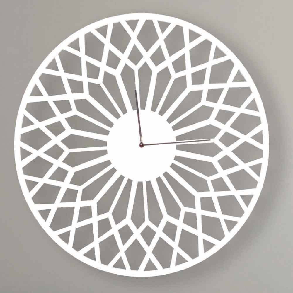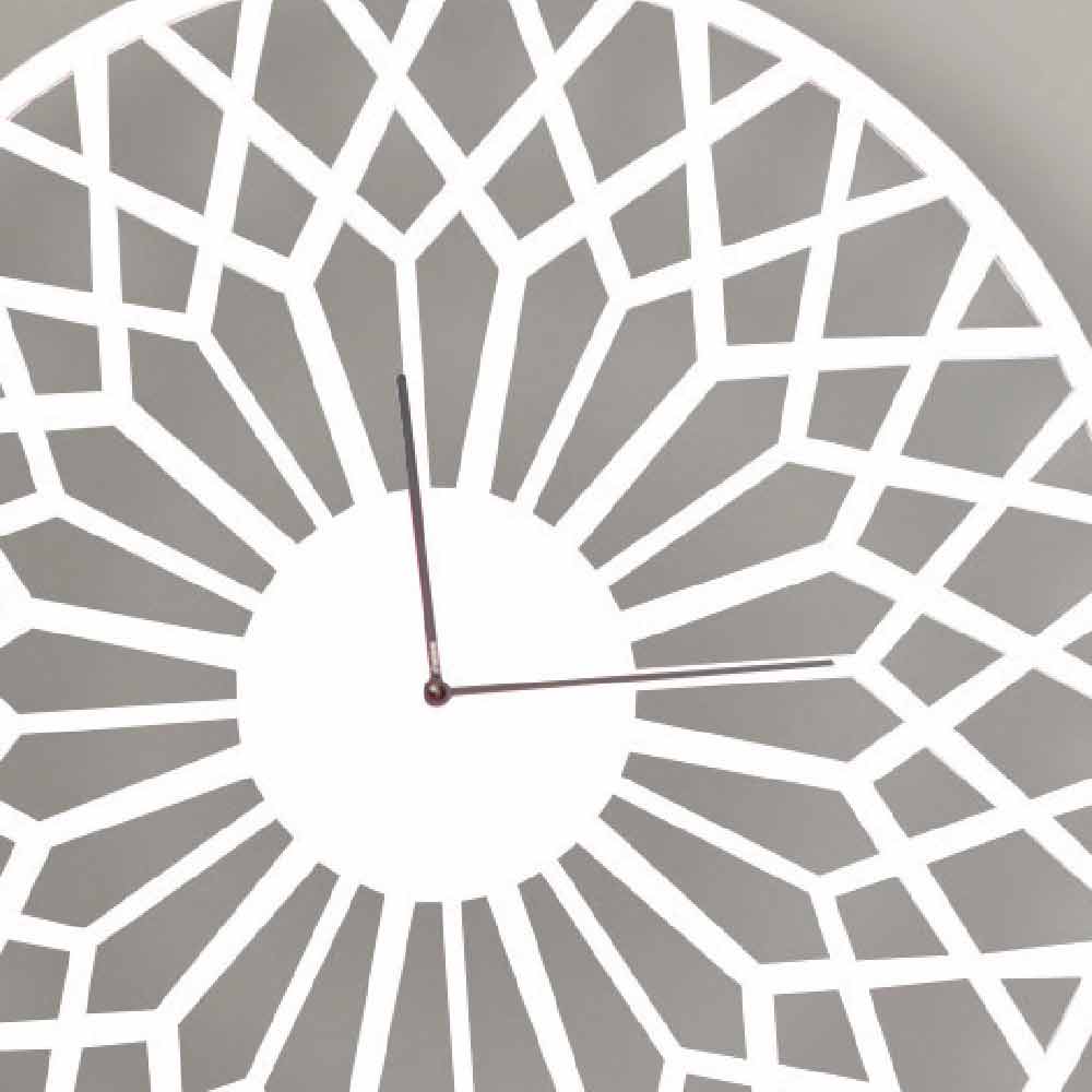 Große runde Design-Wanduhr aus weißem, rosa oder Turteltaubenholz, hergestellt in Italien.